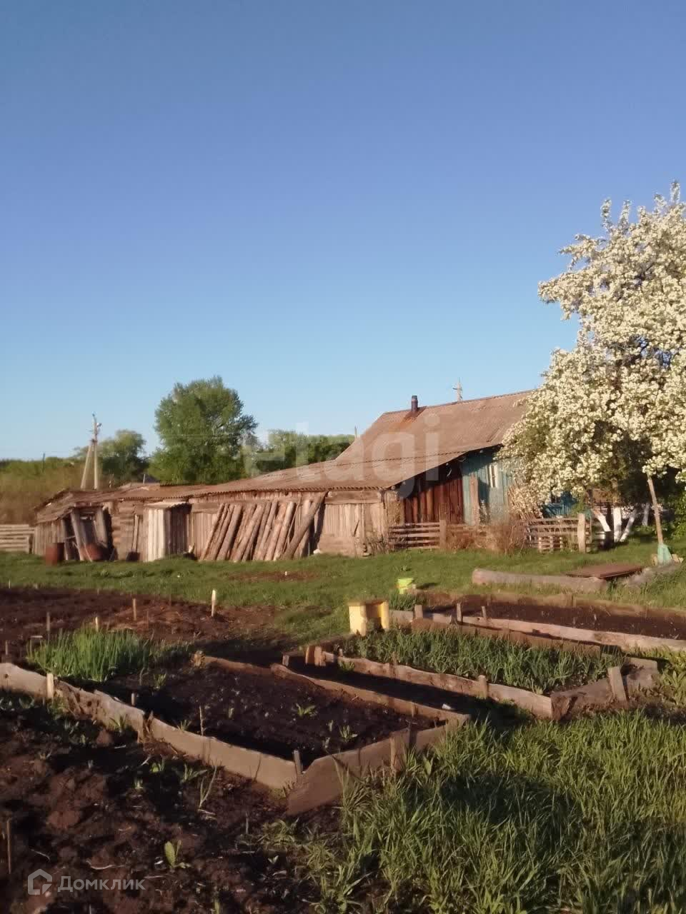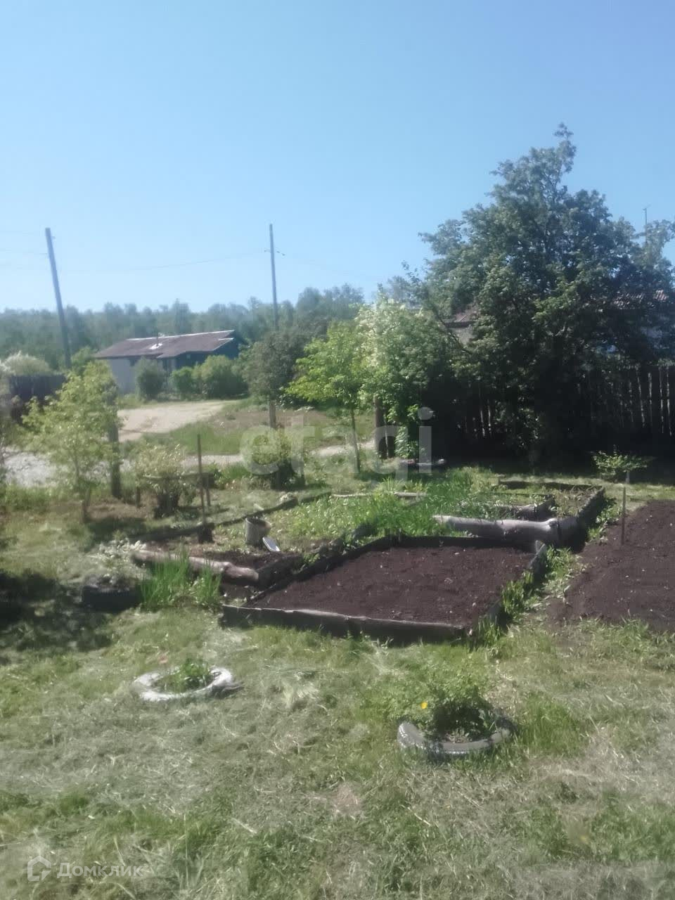 Участок большой, земля плодородная.Есть различные надворные постройки. На участке: 3 яблони, 1 груша, сливы, липа, черемуха, рябина, боярышник, калина, смородина, крыжовник, малина черная и желтая, вишня, чеснок