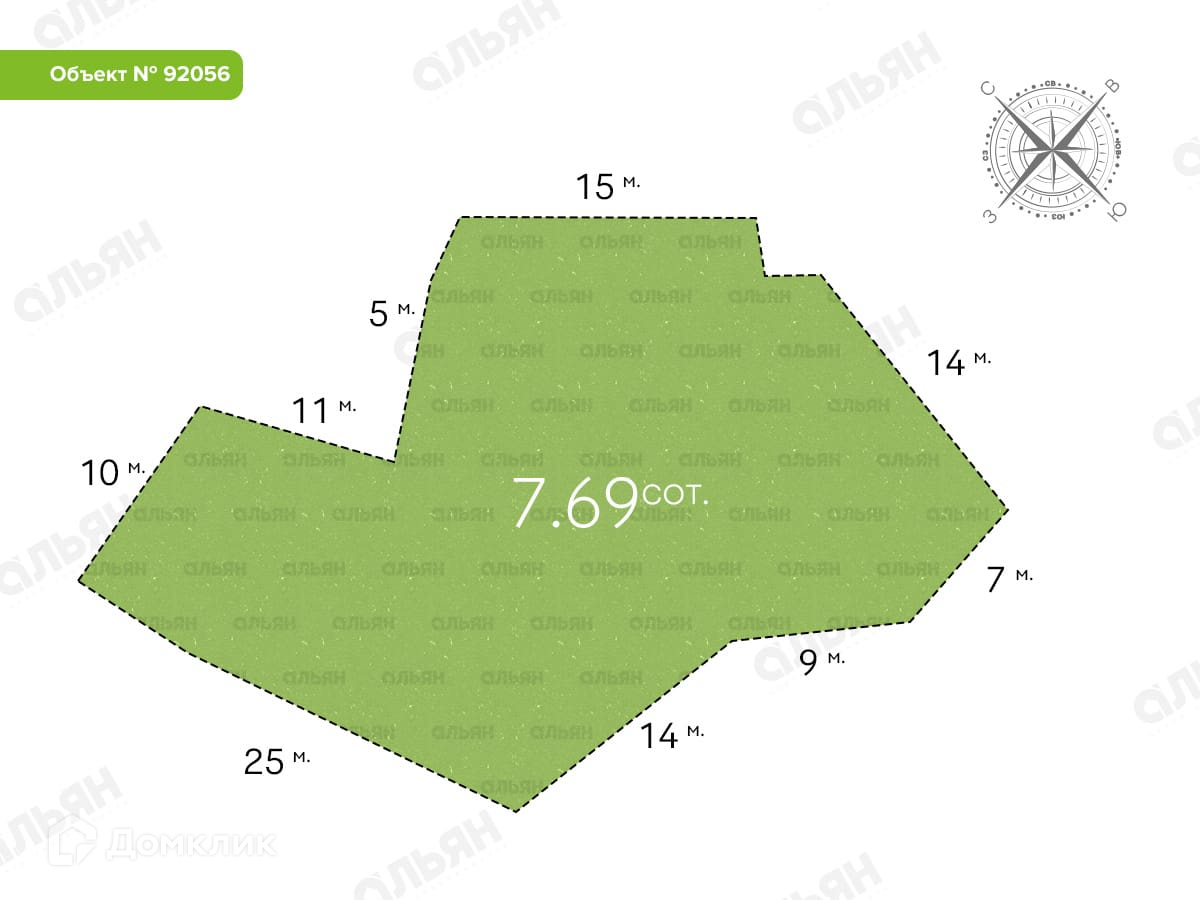 Площадь участка 7.69 сот.