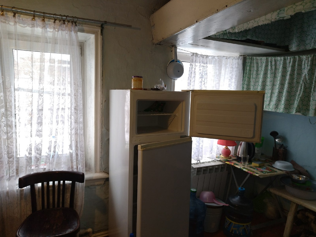 Крепкий дом из бревна на берегу пруда, ул. Колхозная, живописное место,дом на возвышенности, до пруда 100 метров, крытый двор, надворные постройки,действующая баня,в доме 1 комната и бытовое помещение, для отопления дома электрокотел, печь в рабочем состоянии, окна ПВХ, алюминиевые радиаторы,в доме сухо, нет запаха сырости. Огород разработан, есть клубника, много сортов плодовых деревьев: облепиха, слива, алыча, чернослив, вишня, много кустарников, всё плодоносит в избытке.