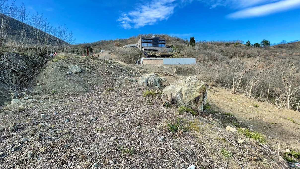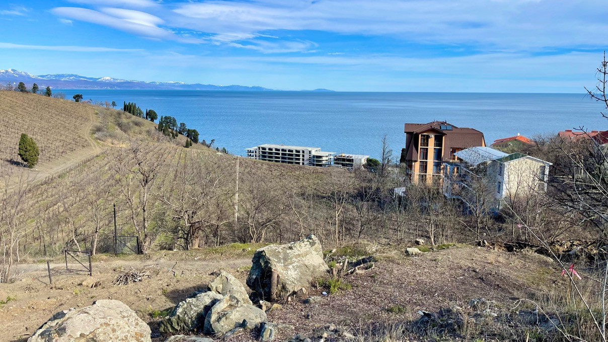 Вид разрешенного использования - индивидуальное жилое строительство. Рельеф имеет незначительный уклон в сторону моря, участок граничит одной из сторон с виноградником.
