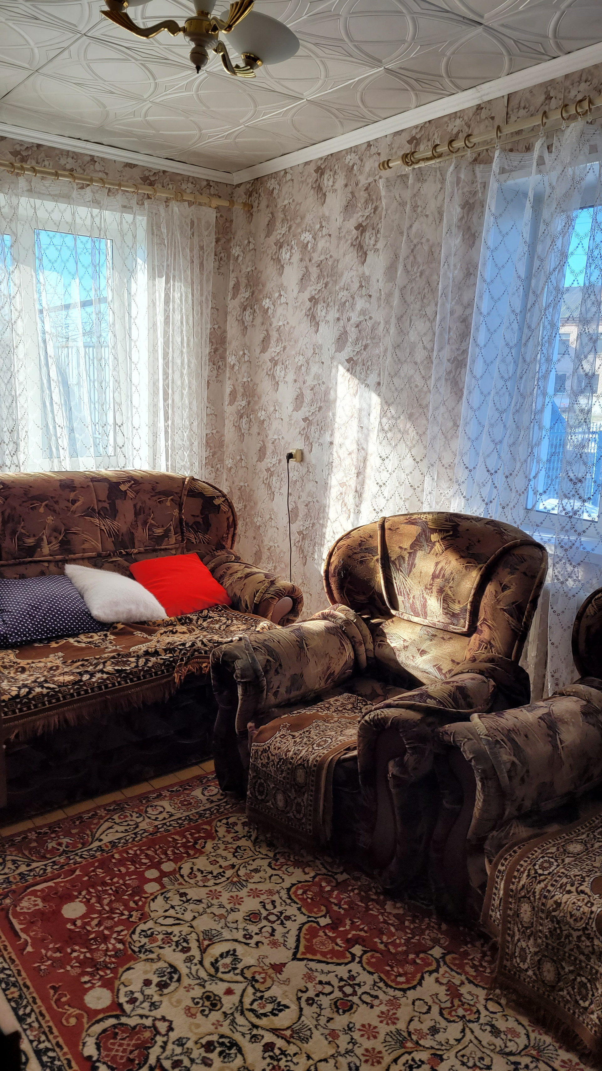 Дом в хорошем состоянии, 1975 г. постройки, отопление центральное газовое, есть в доме небольшая печь, уют и дополнительное тепло зимой, новая крыша, 3 небольших раздельных комнаты 10, 12 и 16 м2 + кухня , есть закрытая веранда! Во дворе установлен металлический гараж, есть постройки для разведения домашней птицы, огород готов к посадкам!