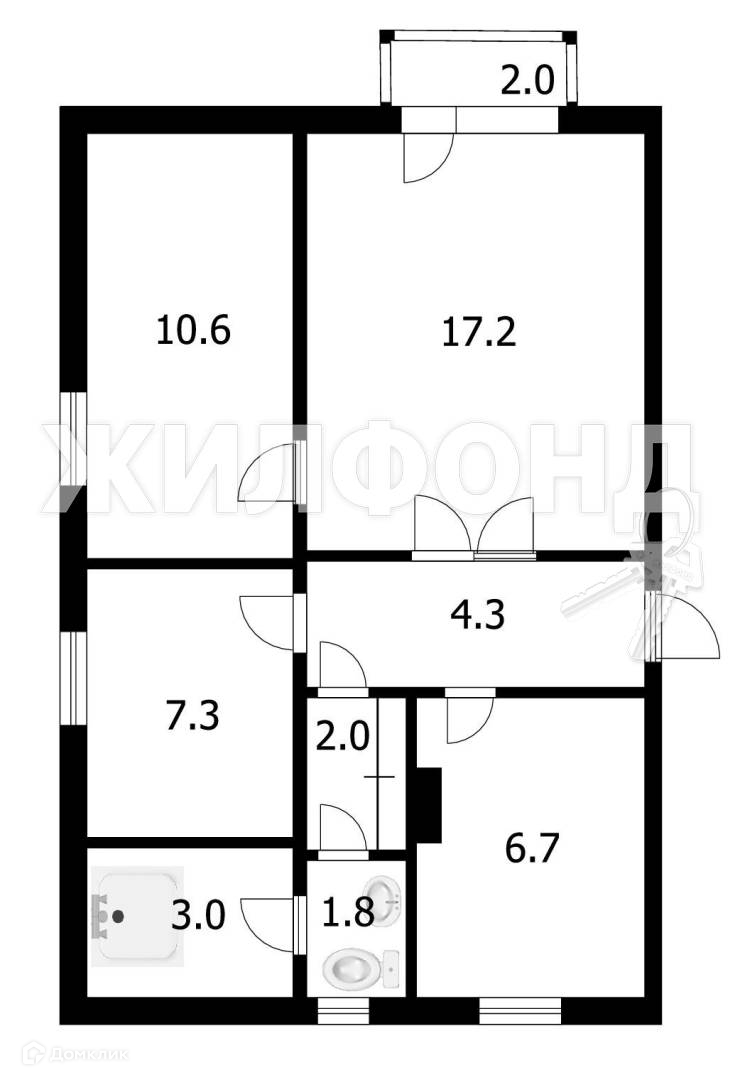 Общая площадь 52.9 м2