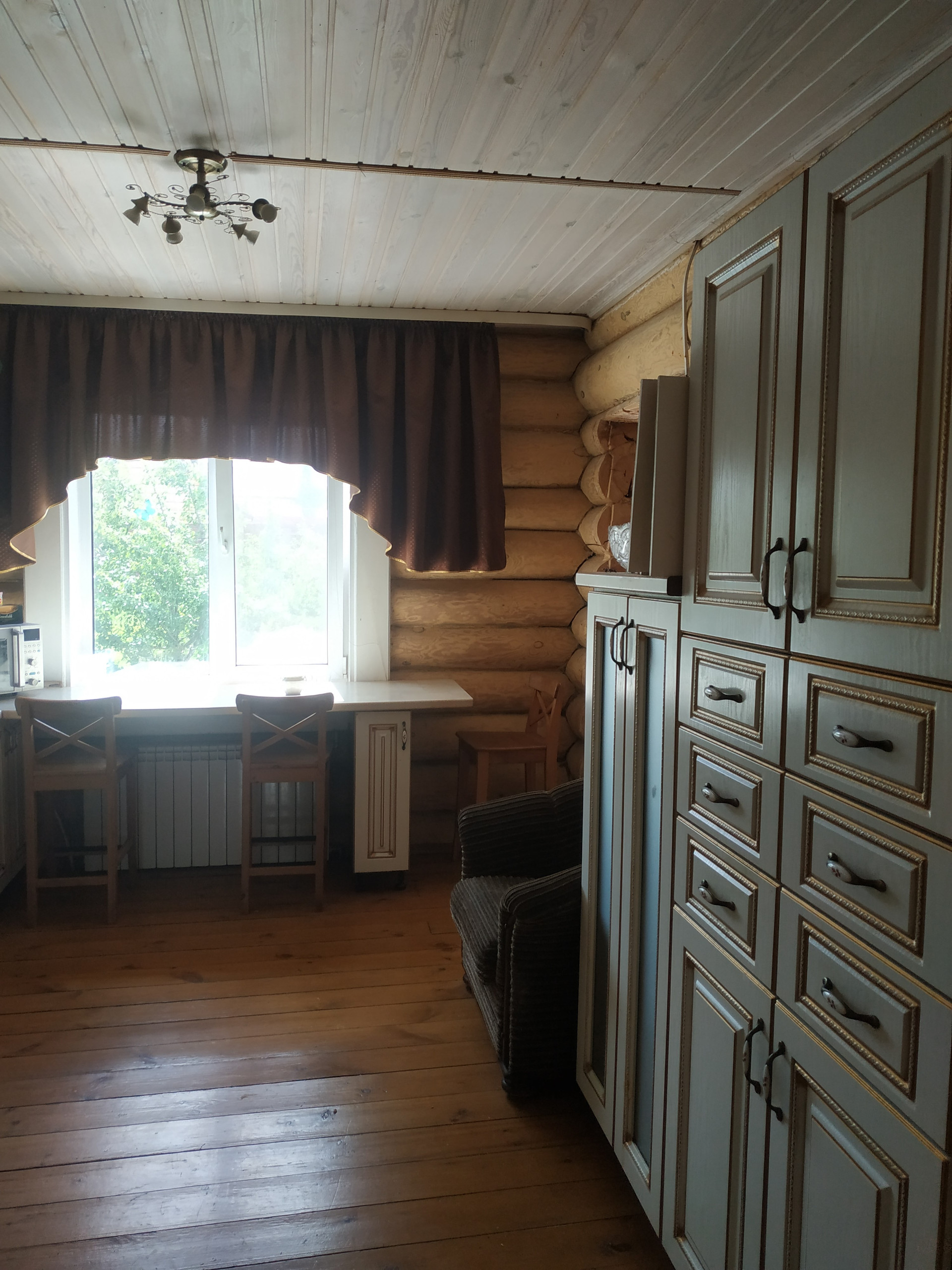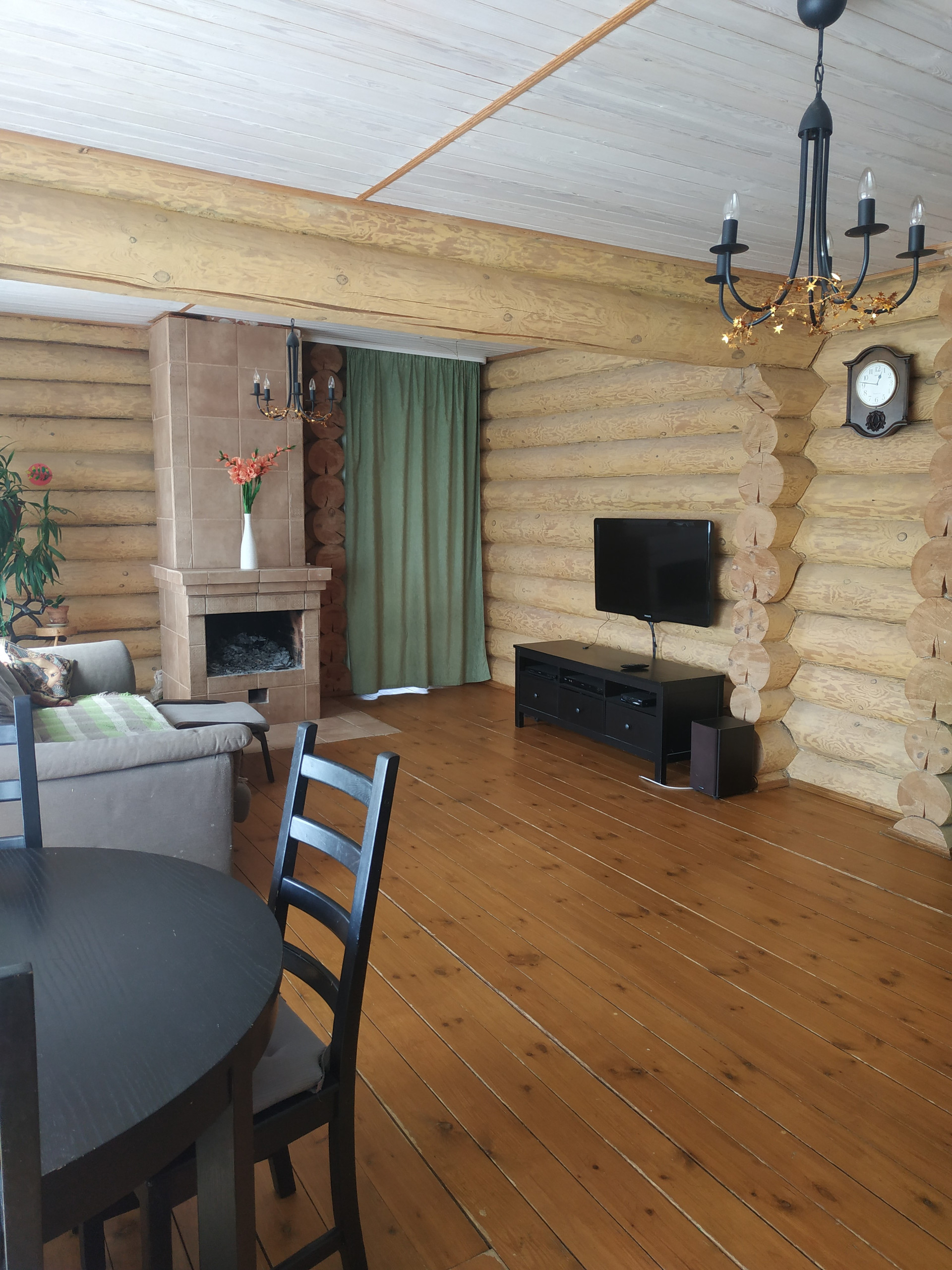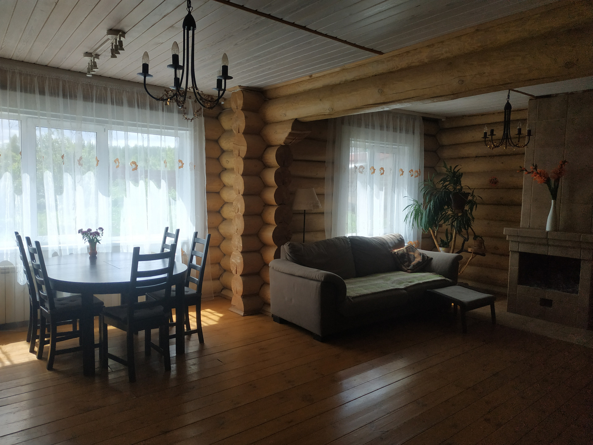 Коттедж построен из цельного бревна. Надо ли рассказывать про преимущество деревянного дома? Экологический материал позволяет вам легко дышать в доме. Зимой он сохраняет тепло, летом дарит вам прохладу. В таком доме вы и ваши дети будут здоровы.