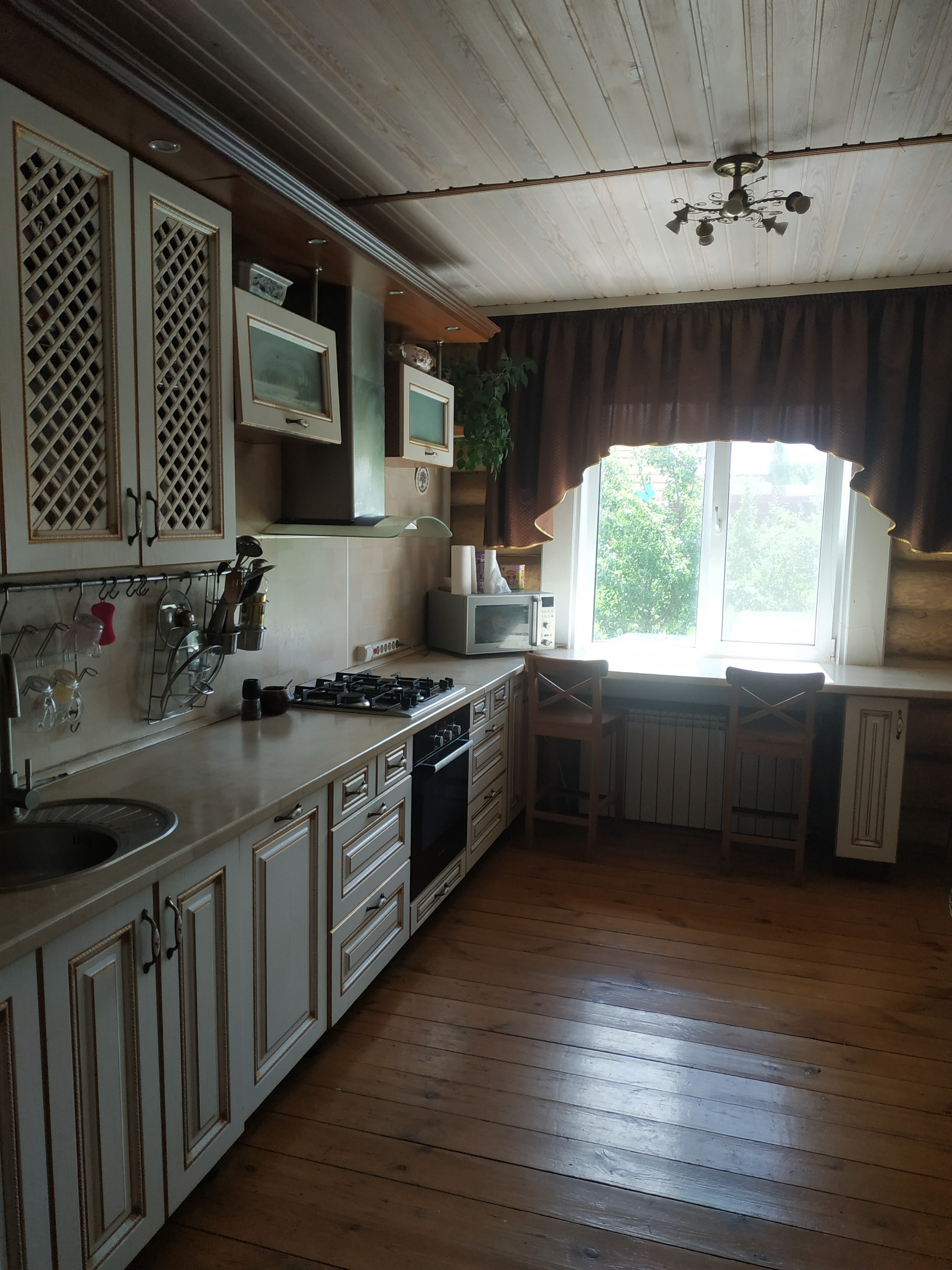 В доме много естественного света, пространства за счет правильно расположенных окон и высоких потолков.