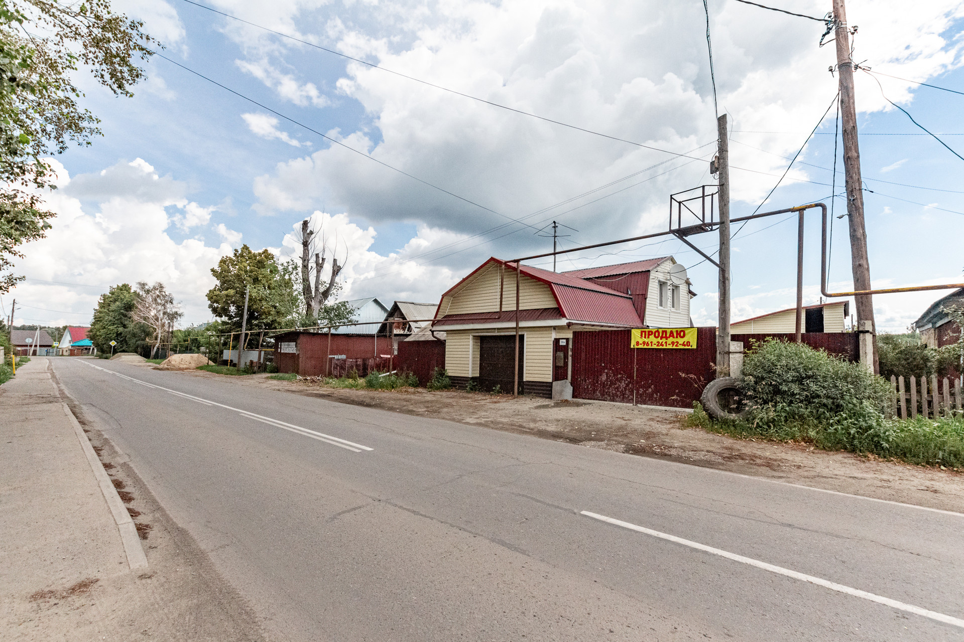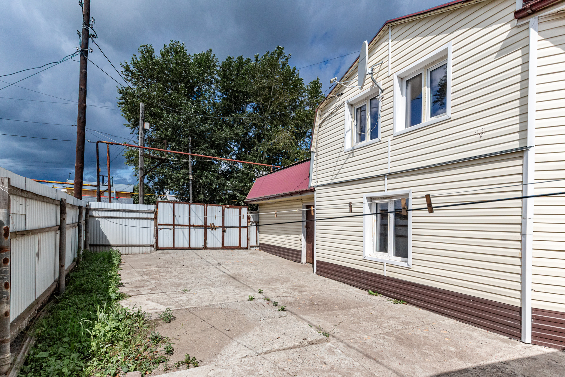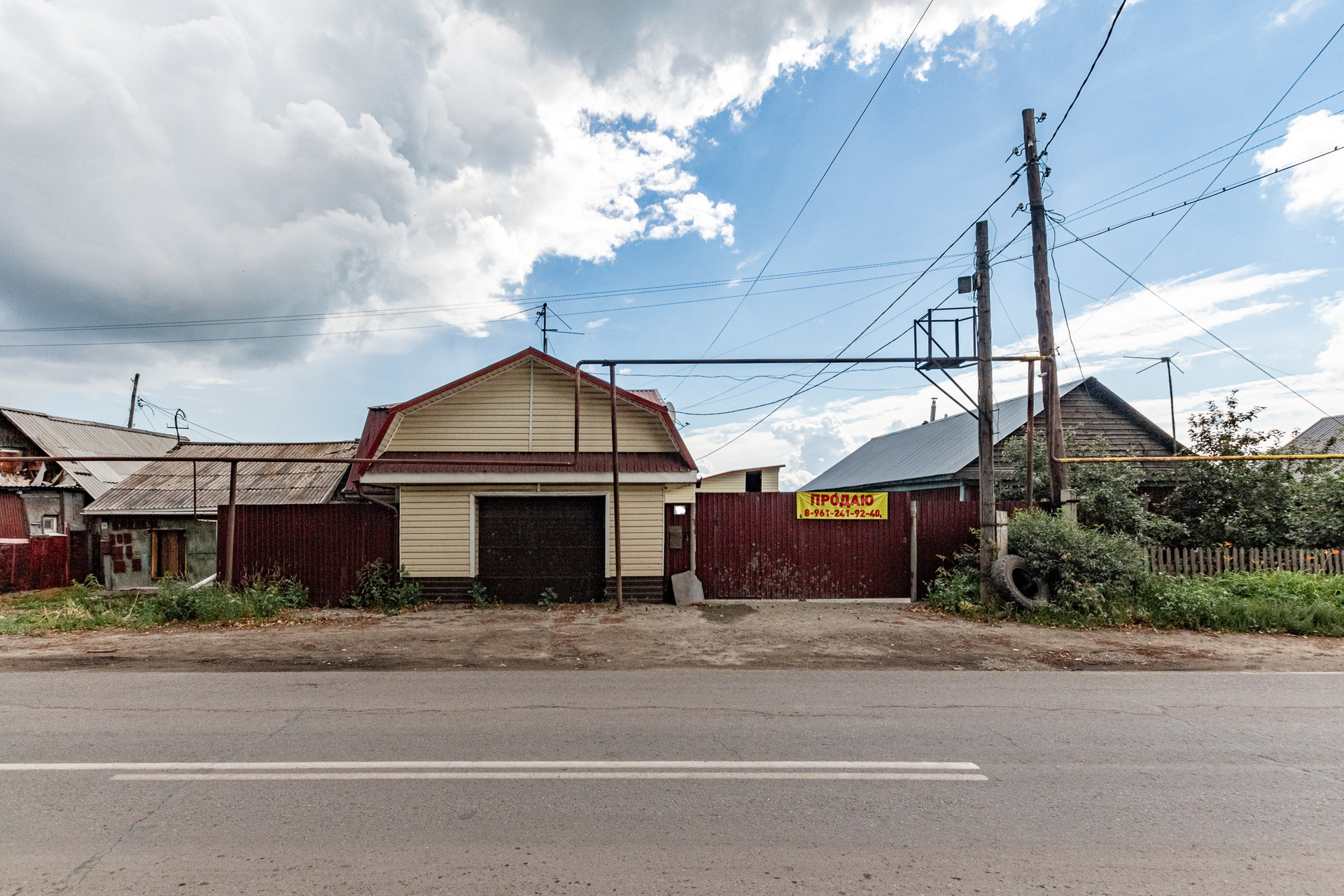 Участок расположен на красной линии с хорошей пропускной способностью. Территория заасфальтирована, есть теплый гараж и парковка под грузовую машину.