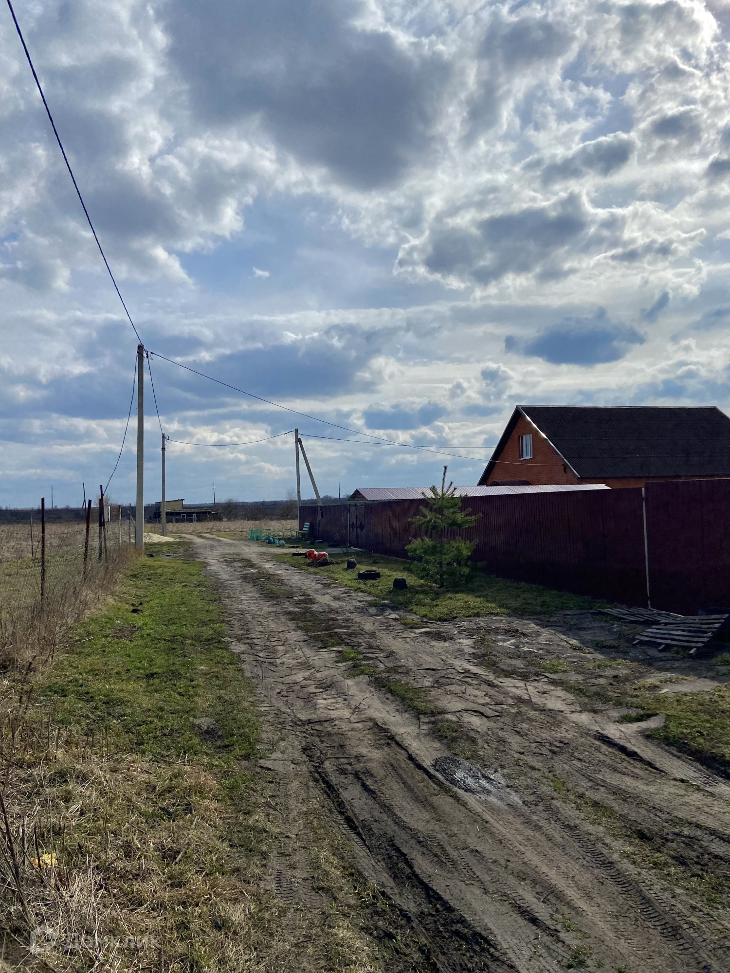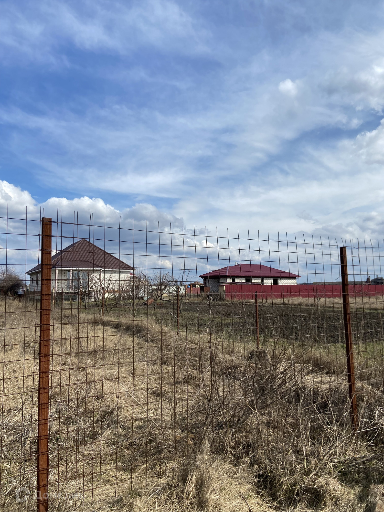По обе стороны от участка строятся коттеджные дома. Участок ровный, правильной формы, огорожен сетчатым ограждением.  На участке находится маленький летний домик.