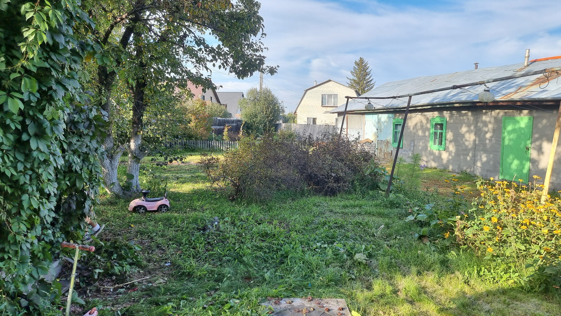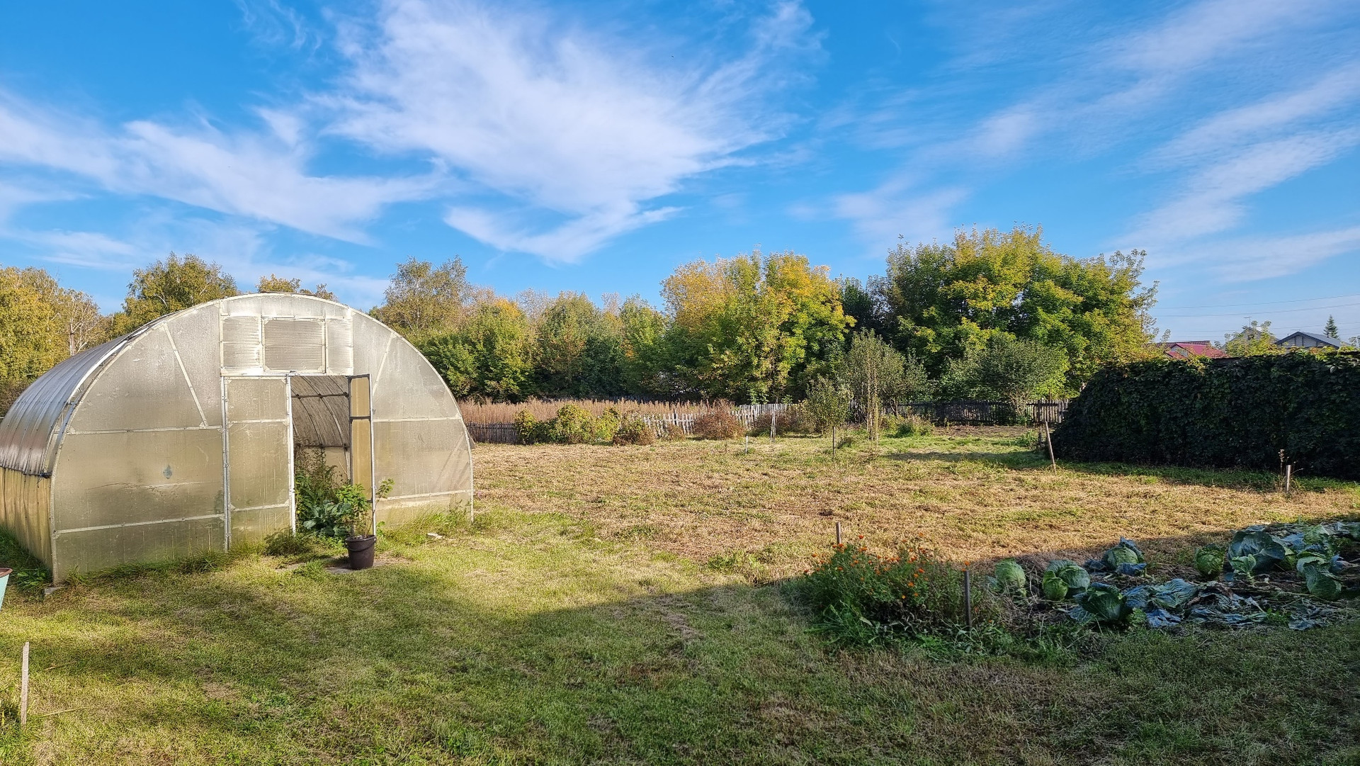 Дом на возвышенности, сухой. Участок ровный: 17 соток., все посадки, плодовые деревья, яблони, груши, ягоды, малина, жимолость, смородина, клубника, все в изобилии. + если вас интересует земля, можем продать еще отдельно смежный участок площадью + 10 соток. (Итого 27 соток.)
