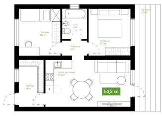 Общая площадь: 45 м2