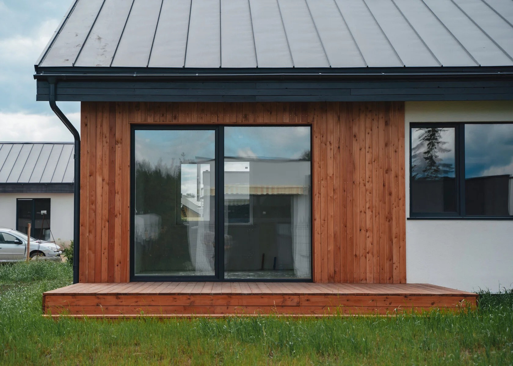 * Внешняя отделка фасадов и карнизов: декоративная штукатурка и строганная доска