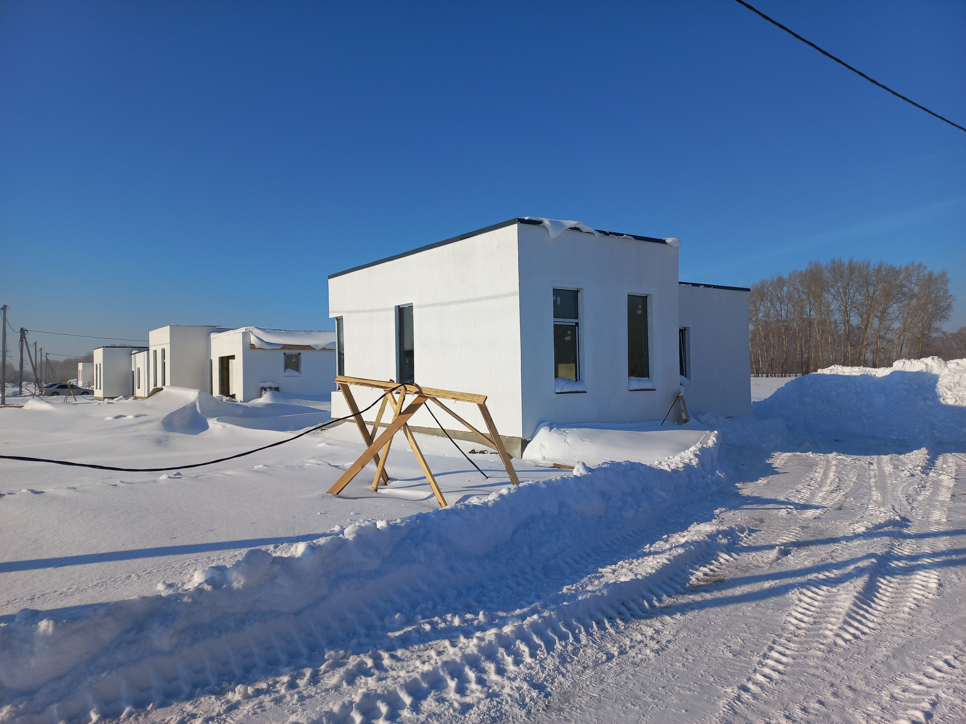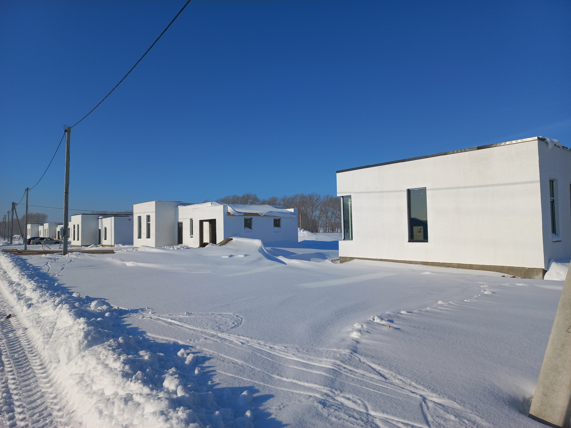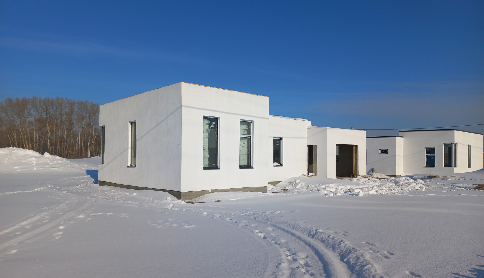 Предчистовая отделка (штукатурка стен, полусухая стяжка пола под чистовое покрытие, разводка электричества по дому, вода и канализация заведены в дом)