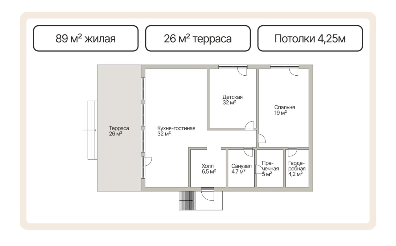 Общая площадь 89 м2