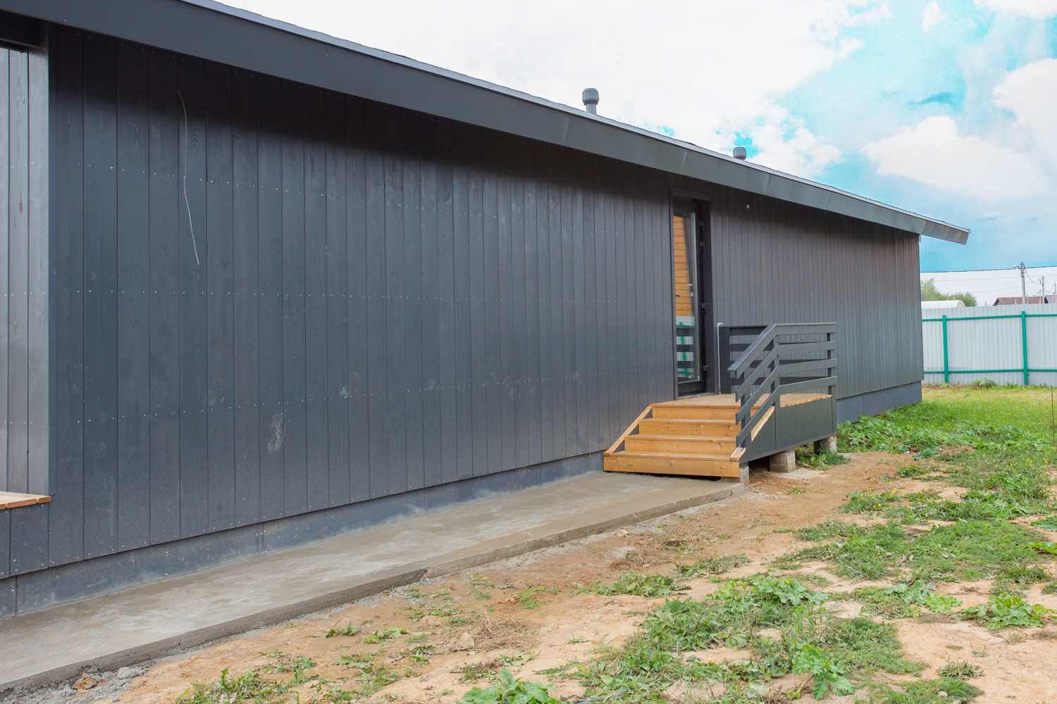Современный дом с просторной кухней-гостиной. Дом подойдёт для семьи с одним/двумя детьми.
