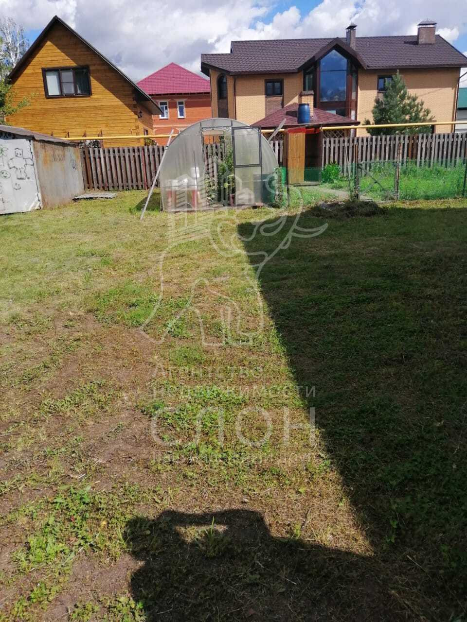 На участке металлический гараж и теплица.