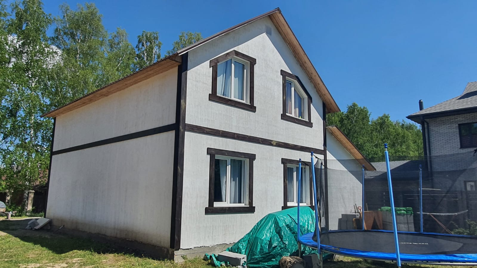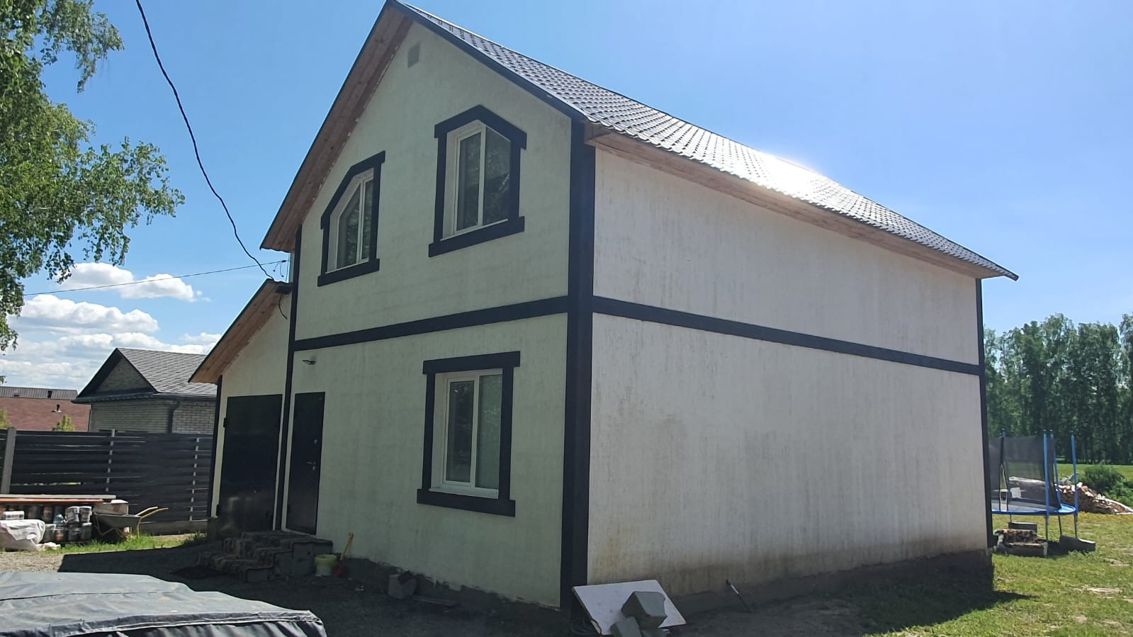Готовый дом можно посмотреть по предварительной договорённости, там идут внутренние отделочные работы.