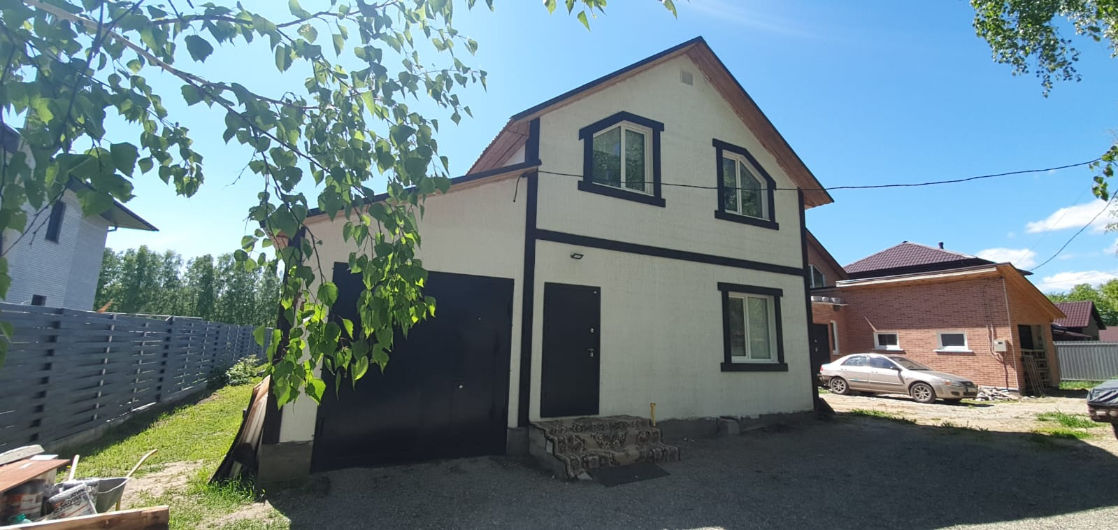2 этажный дом с гаражом и 3 спальнями, (вкл. гараж 30м2 ), материал стен - Сибит D350 / D400, межэтажные перекрытия ЖБ плиты, высота - 3м.
