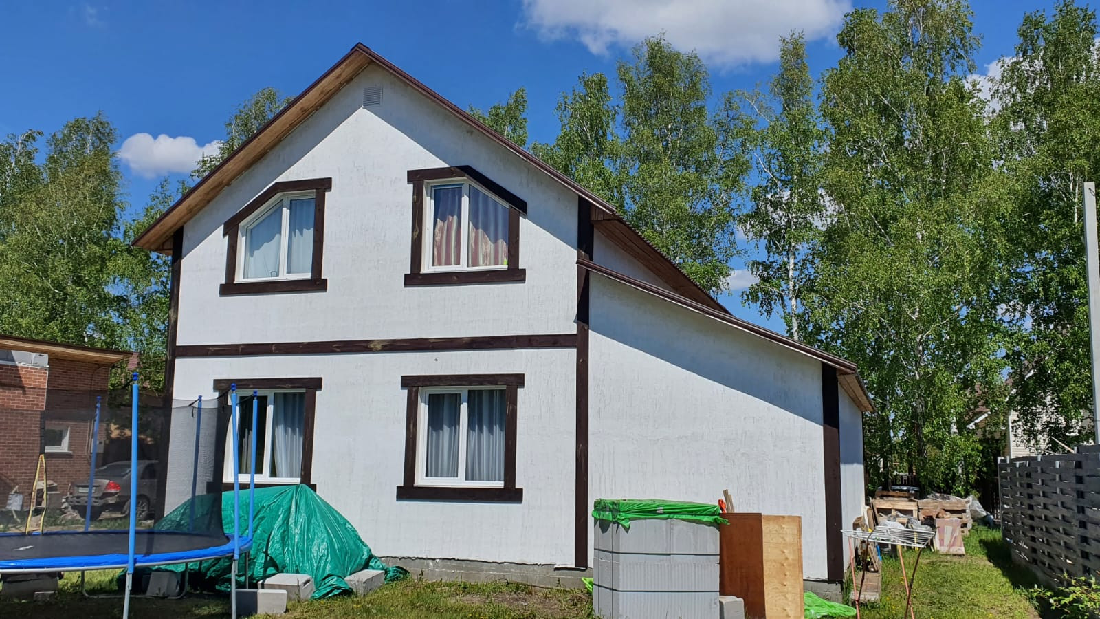 Готовый дом можно посмотреть по предварительной договорённости, там идут внутренние отделочные работы.