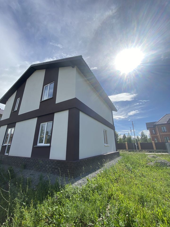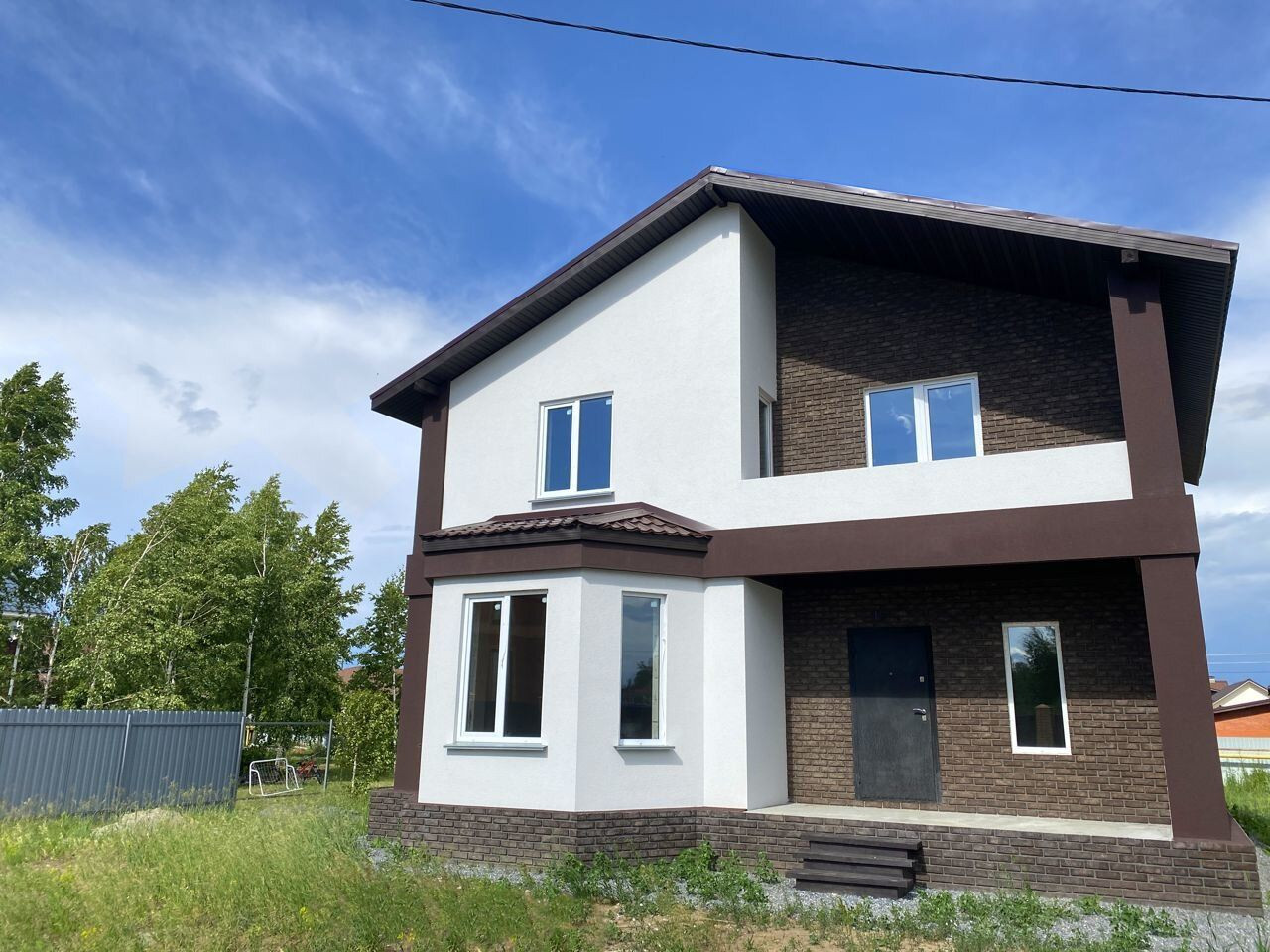 Дом построен из сибита, фaсад выполнен из клинкернoго киpпича в сочетании с декорaтивнoй штукaтуркой.