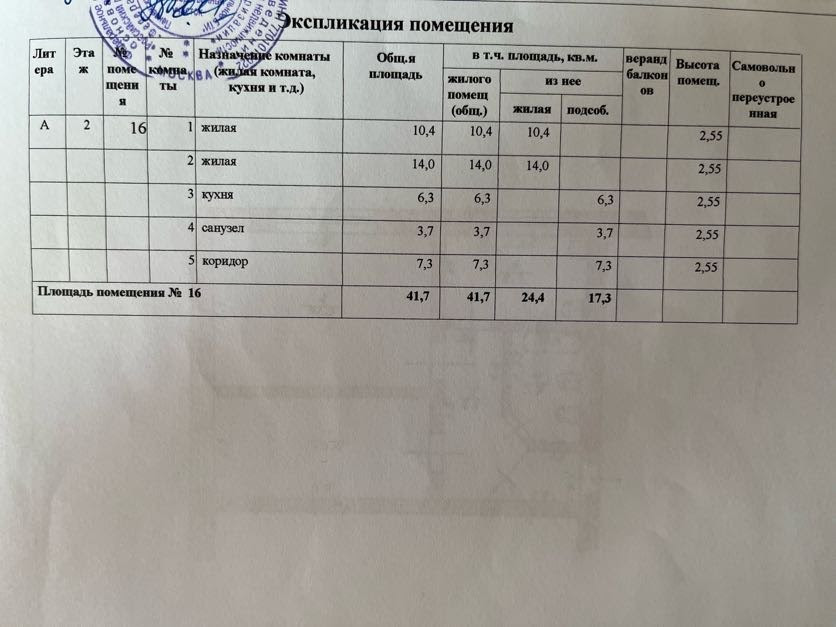 Общая площадь 41.7 м2