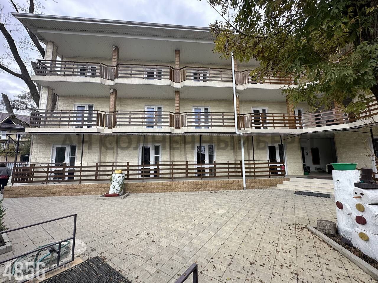 Продаётся дом с гостевыми комнатами в селе Лермонтово Туапсинского района.Общая площадь дома 810 кв.м., жилая- 562 кв.м., площадь участка 11.6 соток. Трехэтажный дом + мансардный этаж. 27 комнат, полностью укомплектованы и готовы к круглогодичному приёму гостей. В каждой комнате собственный санузел, мебель и кондиционер. На 1 этаже имеется кухня общего пользования с мебелью, техникой и выходом на летнюю террасу. Во дворе стоит бассейн и мангальные зоны. Качественный ремонт, заезжай и живи. Удобный заезд и большая парковочная зона.  С верхнего этажа открывается красивейший вид на море и горы. Аквапарк в 5-ти минутах ходьбы. До моря 10-15 минут неспешным шагом. Сетевые магазины в шаговой доступности. Большая база приезжающих гостей на круглогодичный период.Все подробности по телефону. Номер объекта в базе 4856.