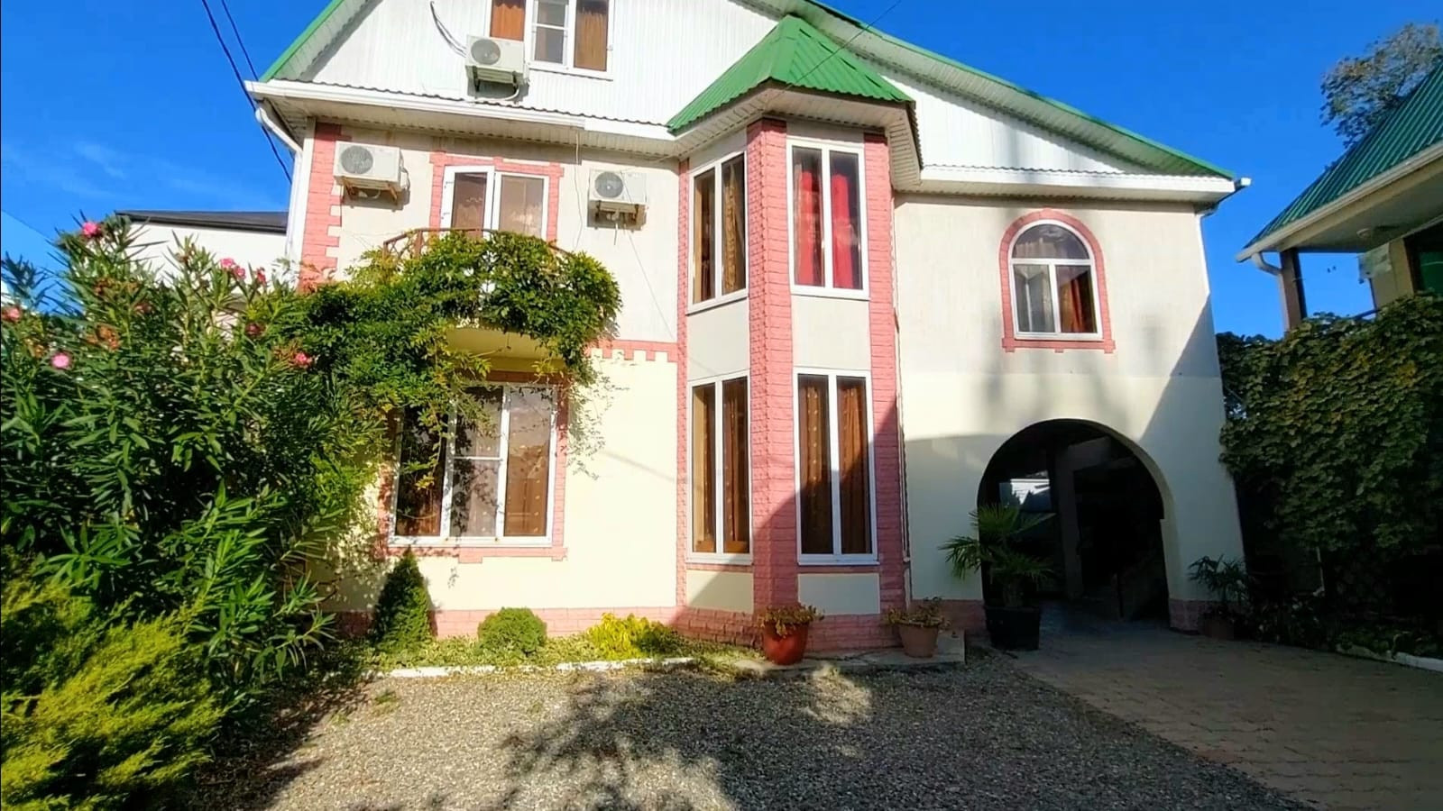 В продаже жилой двухэтажный дом с мансардой + двухэтажный гостиничный комплекс с полностью подготовленными 12-ю гостевыми номерами на земельном участке площадью 4,14 соток, на первой линии побережья в селе Лермонтово Туапсинского района.