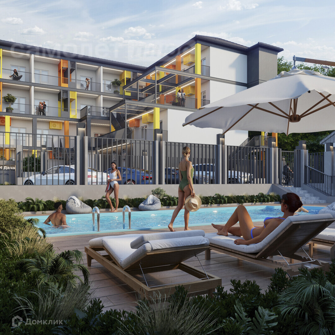 На территории- бассейн, ресепшен, лаундж-зона, летний кинотеатр, детская зона, ресторан!