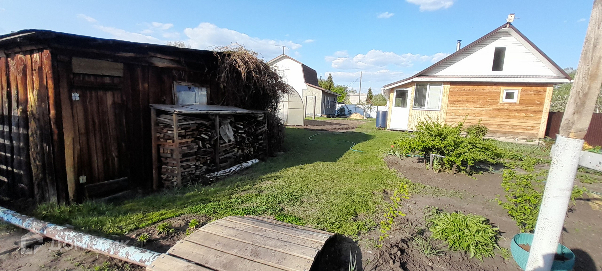 Предлагаем к покупке дом (газоблоки, 43.8 кв.м (по документам), сделан пристрой, общая площадь увеличена, проводятся работы по внутренней отделке, септик на 10 куб.м, вода заведена в дом, газовое отопление), зем.участок 14.5соток (ухожен, имеются насаждения, плодоносящие деревья, две теплицы, две сарайки, колодец, мангальная зона), баня (брус, 48.9 кв.м, стоит на регистр.учете, вода заведена, газовое отоплление). Все подробности по телефону.