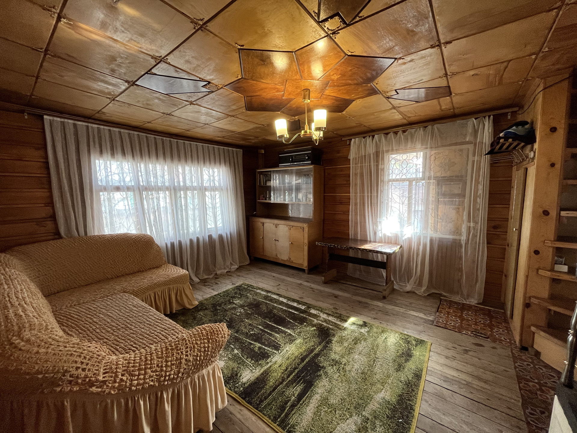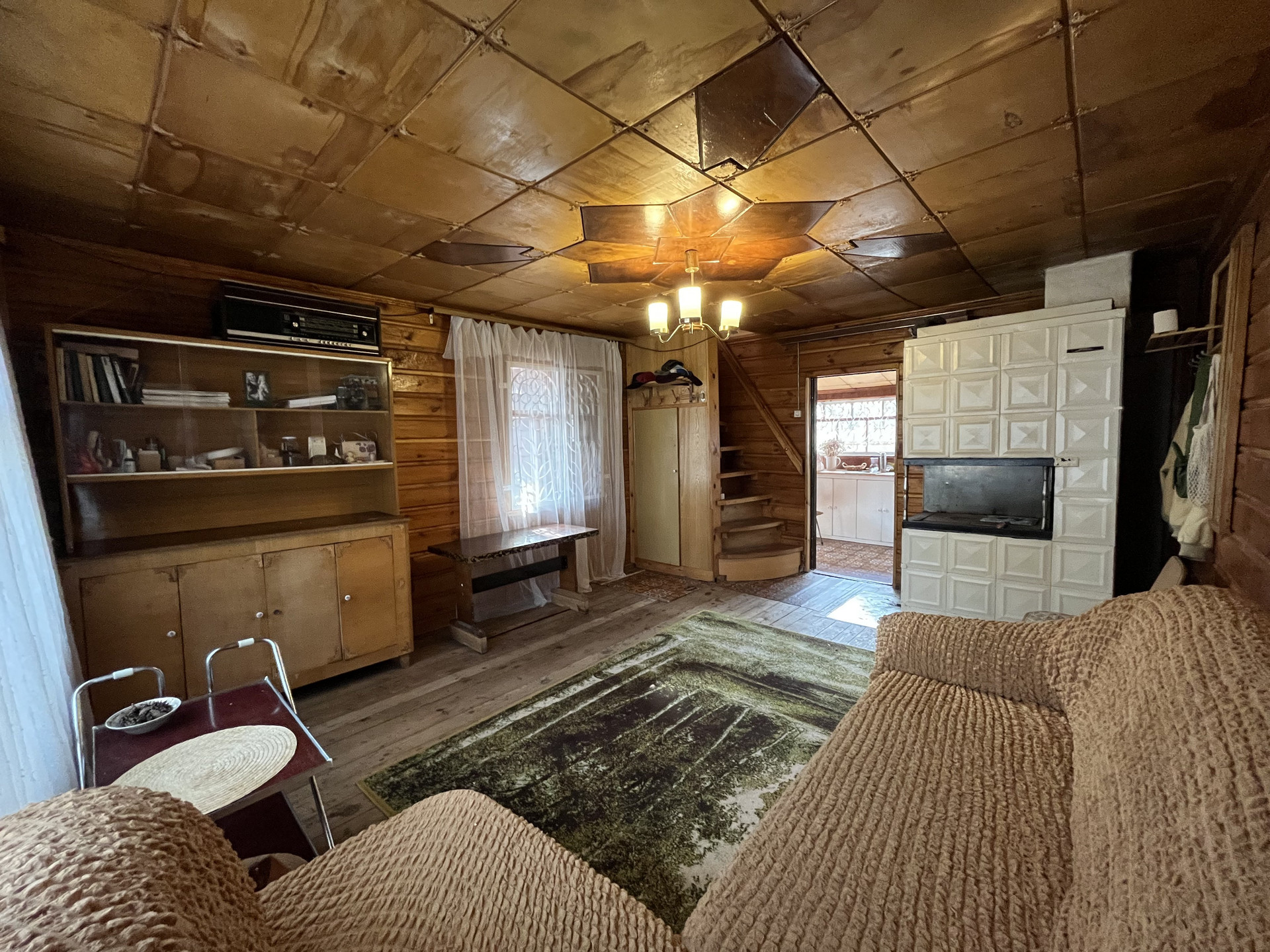 ♦️В доме, на первом этаже стоит комод и большой разборный диван на 2 спальных места, оборудован шкаф под лестницей, которая ведёт на второй этаж.