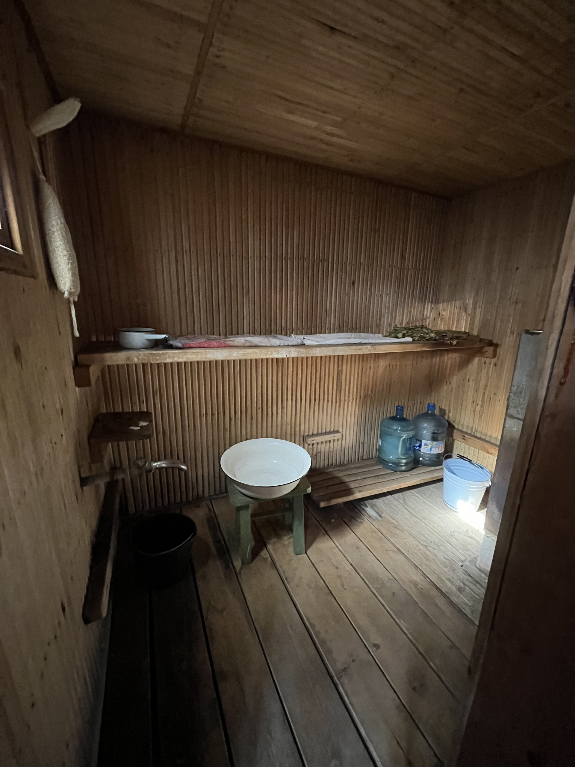 ♦️Рядом с баней стоит большой бак, от него в баню заведена вода. Соответственно летом достаточно набрать бак и пользоваться холодной водой, так и набирать для нагрева. С ведрами ходить не придётся.