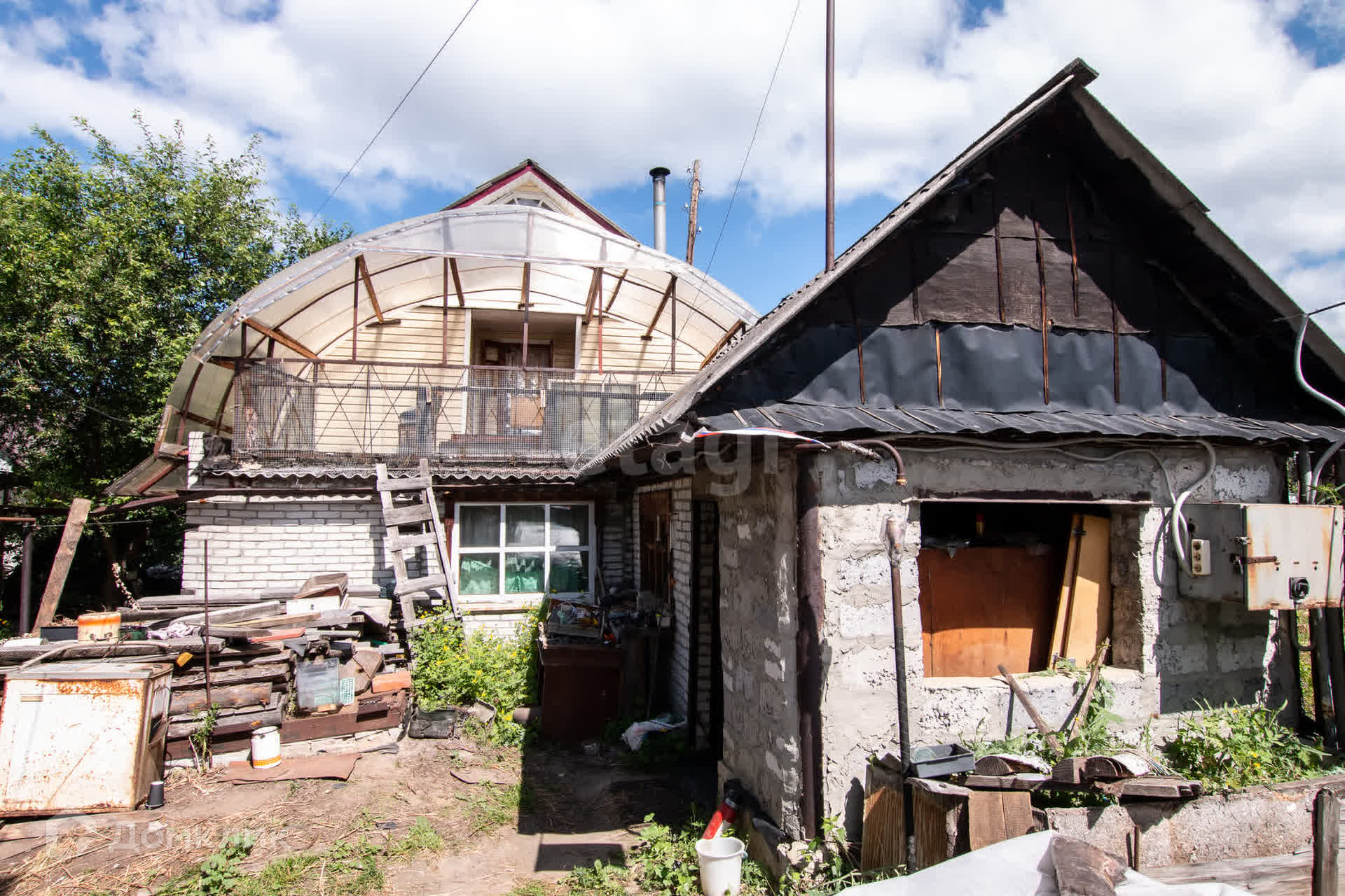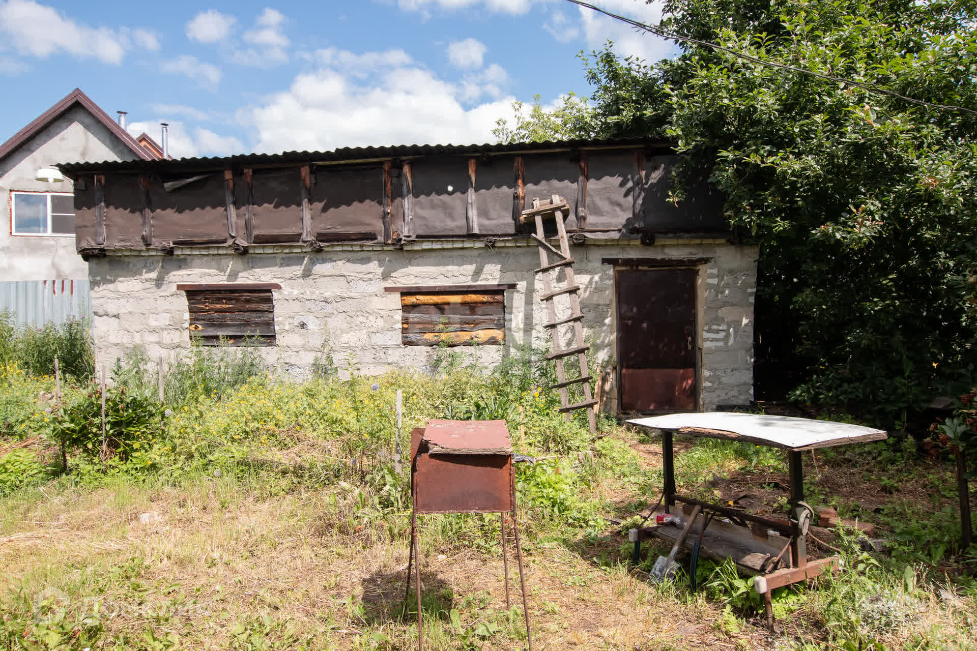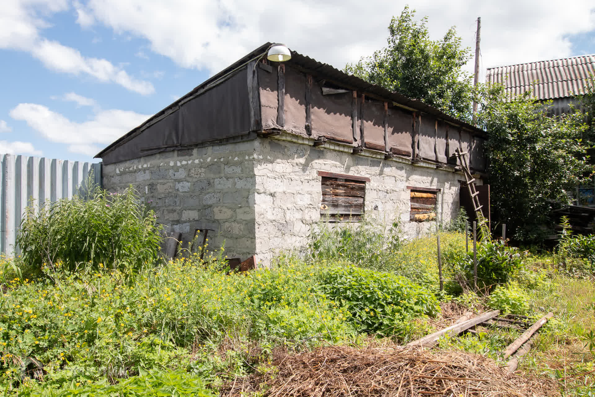 Есть хорошая сарайка из керамзитобетона, можно использовать как мастерскую.