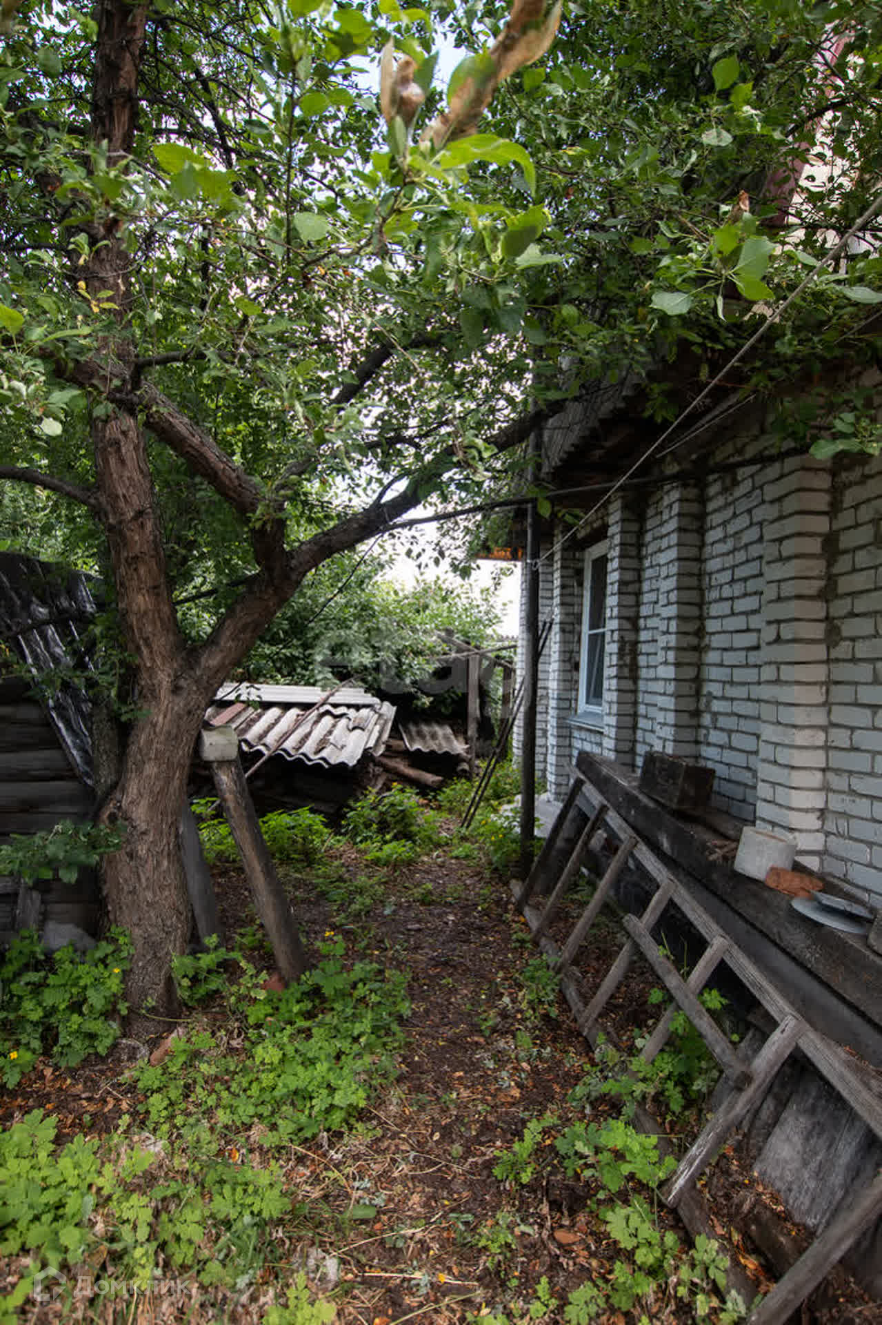 На участке много яблонь, малина, смородина, вишня.