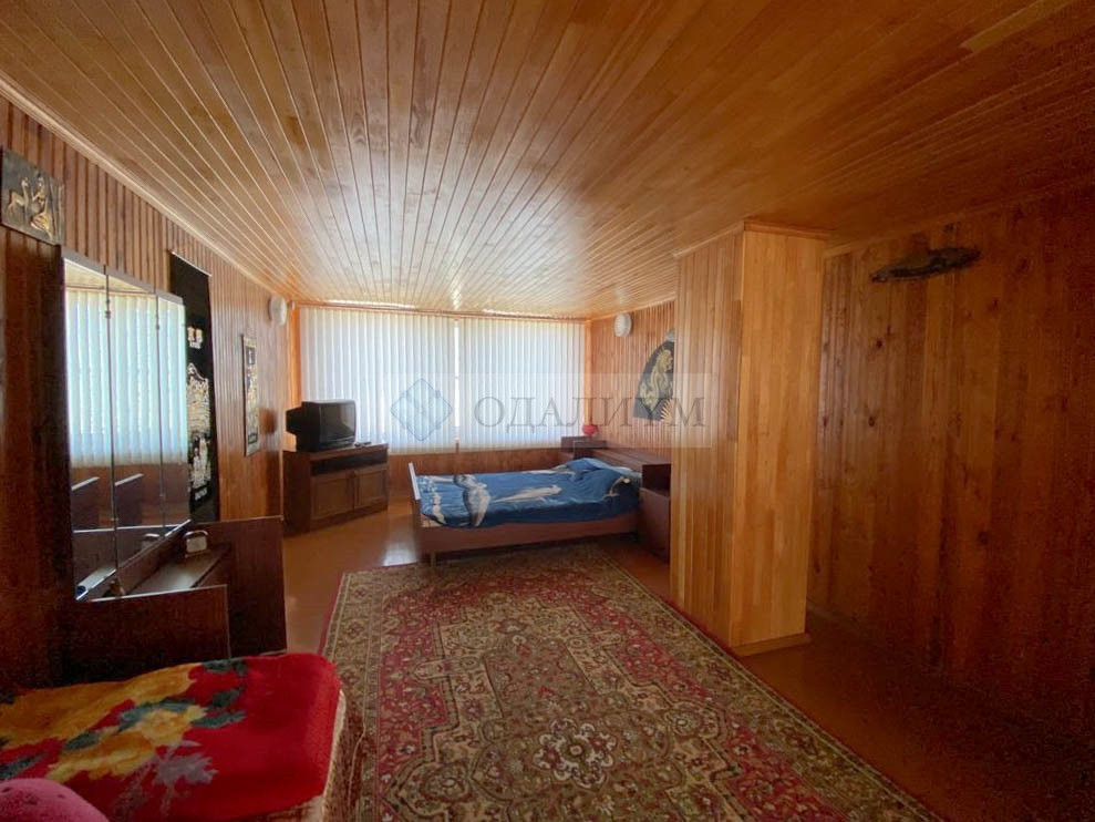 Мансарда утеплена и обшита деревянной вагонкой: Спальня, большой холл с панорамными окнами, кладовые.
