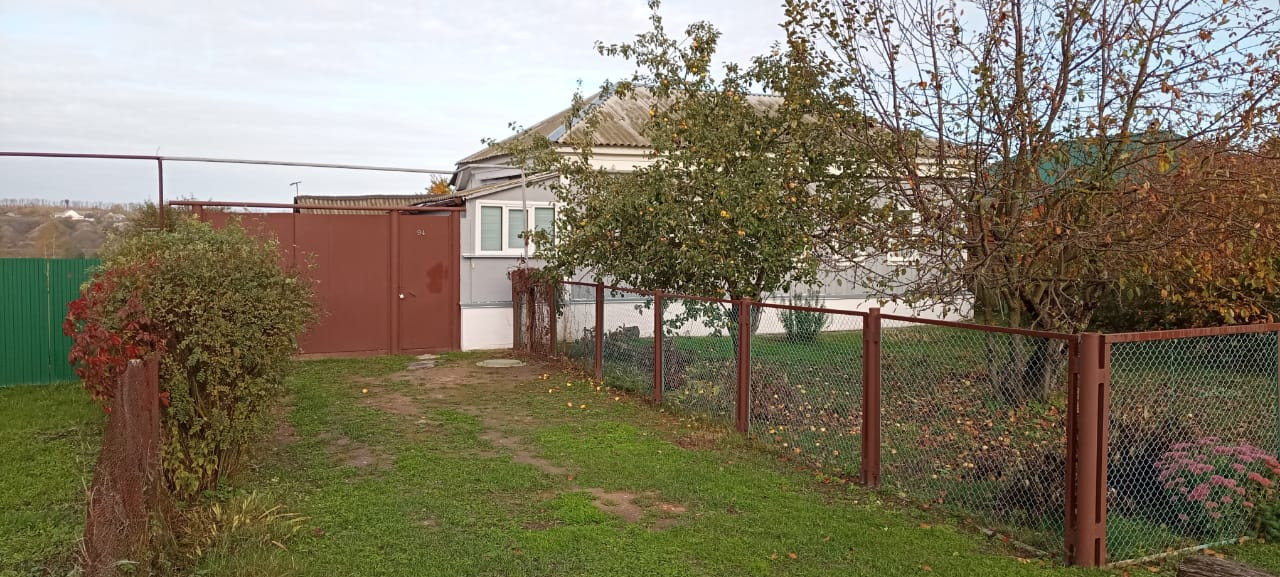 Площадь дома 51.7м2. В дома 2 большие жилые комнаты и крытая терраса. Со стороны дороги палисадник с плодовыми яблонями.