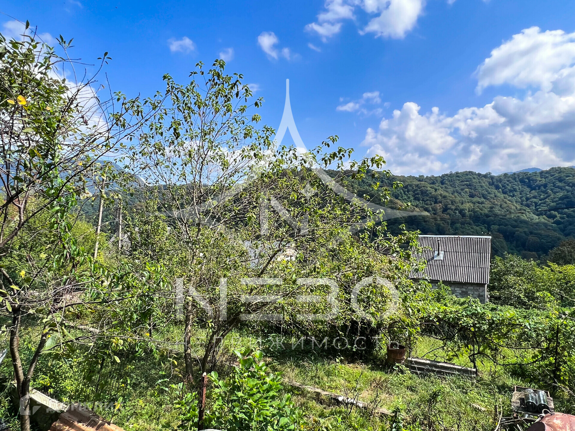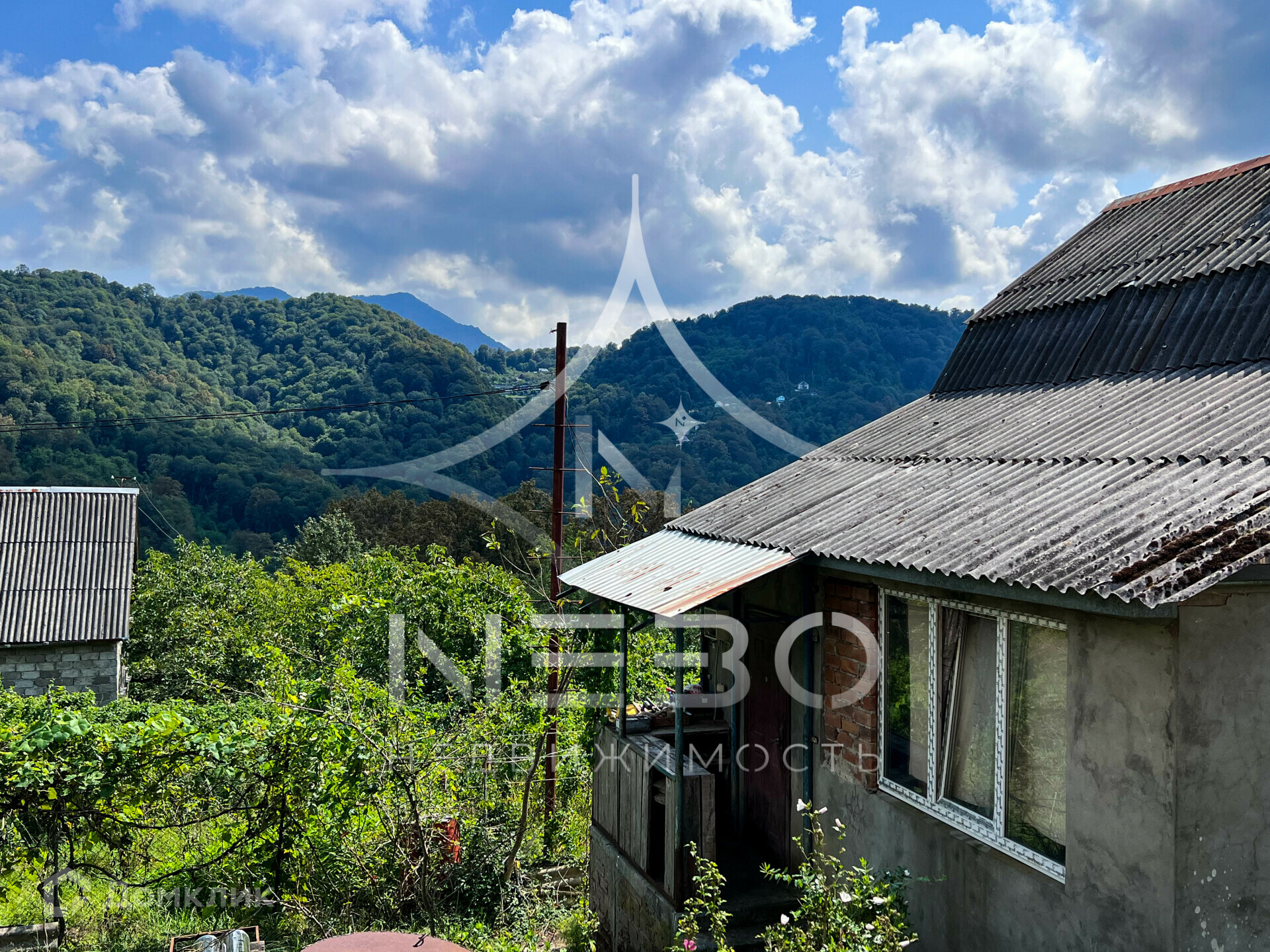 В продаже дом утопающий в зелени участок с панорамным видом на горы, граничит с территорией национального парка.