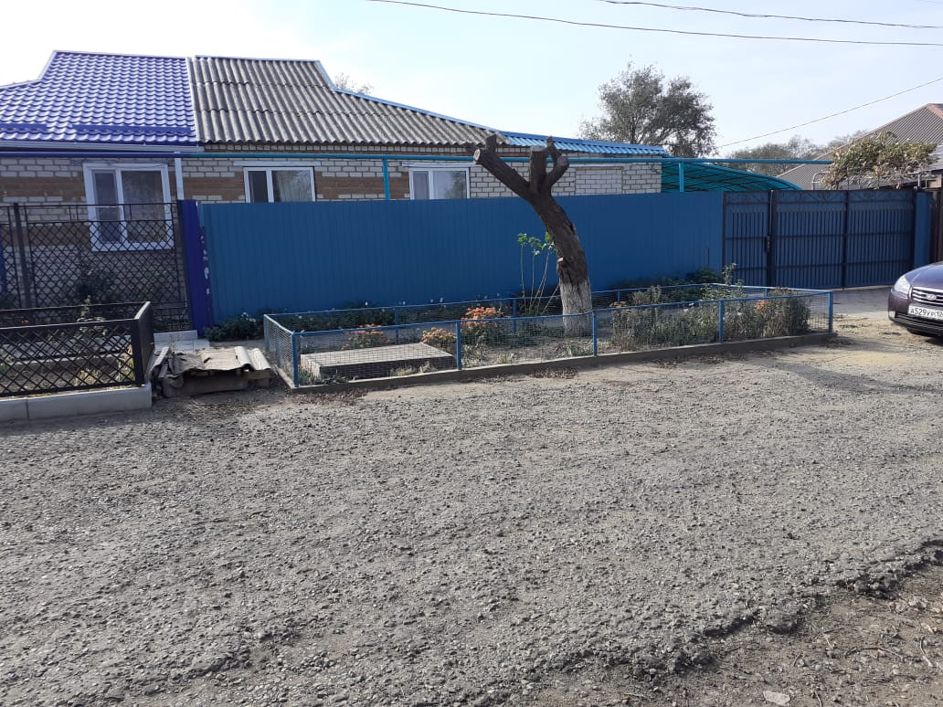 Двор огорожен со всех сторон, ворота сделаны из металлопрофиля.
