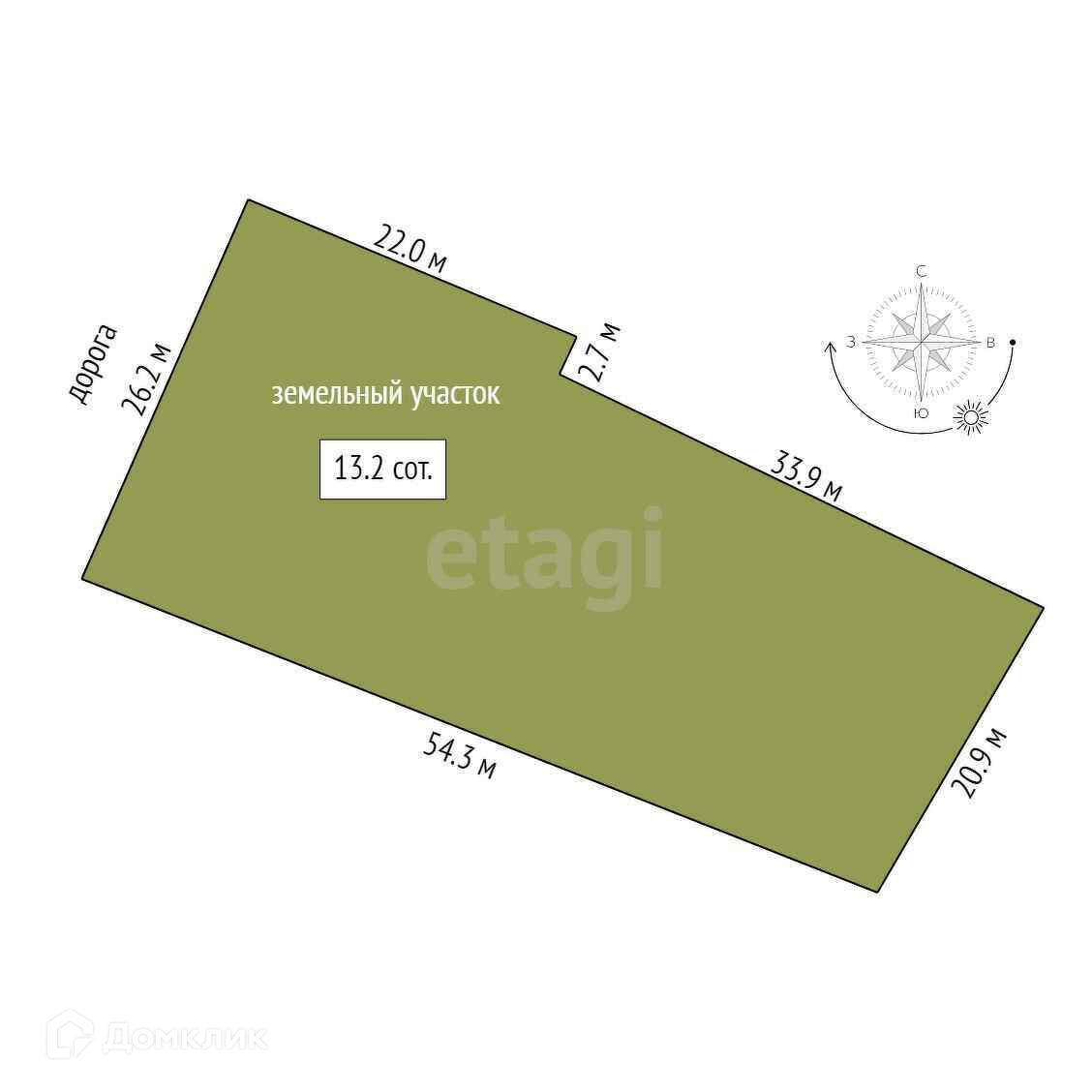 Площадь участка 13 сот.