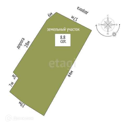 Площадь участка 8.8 сот.