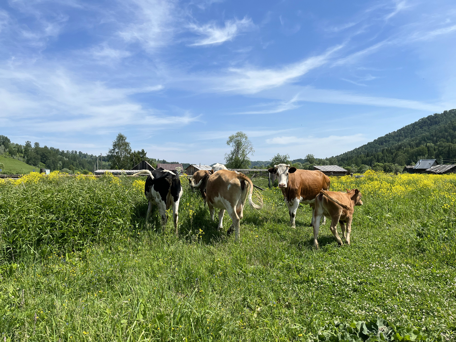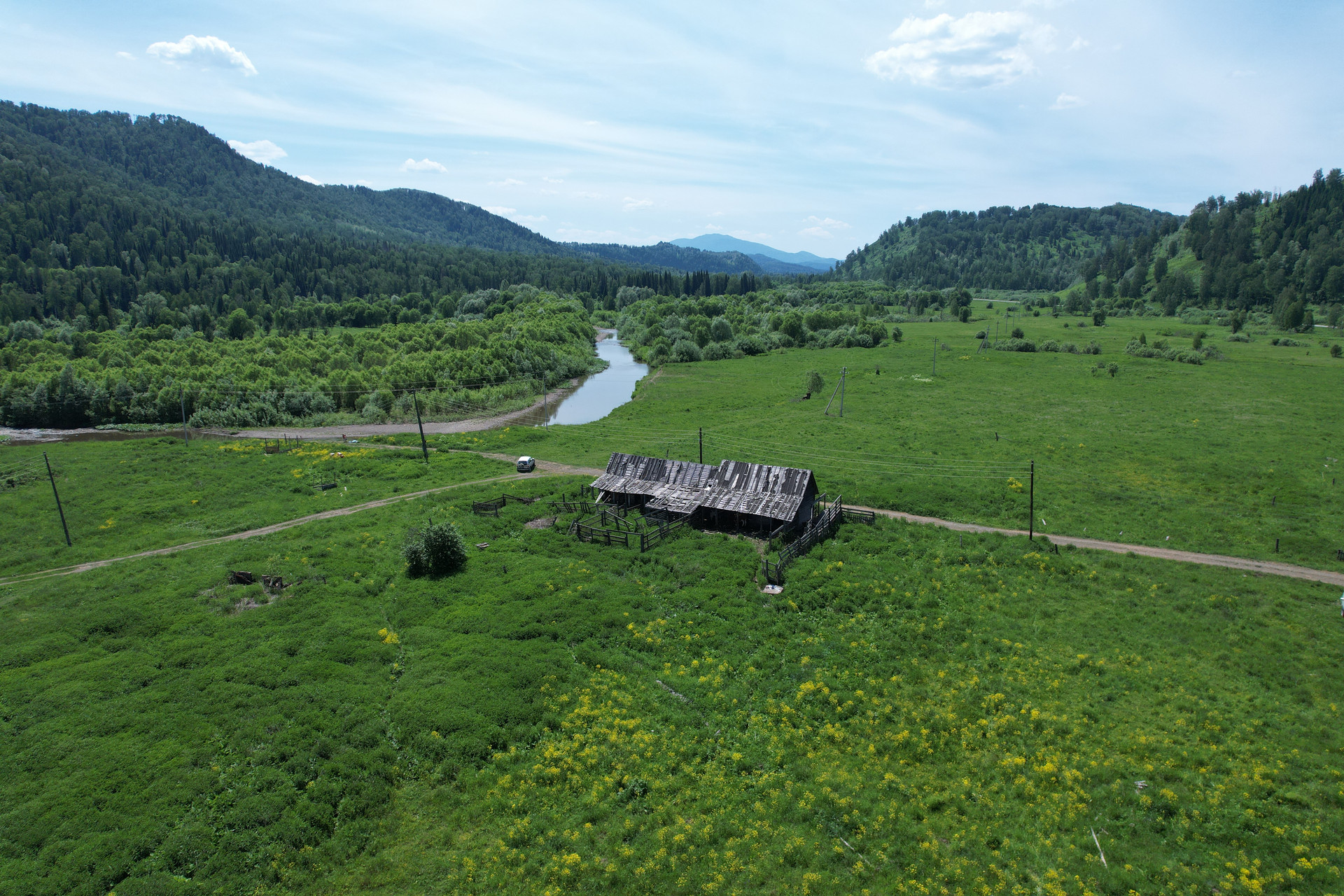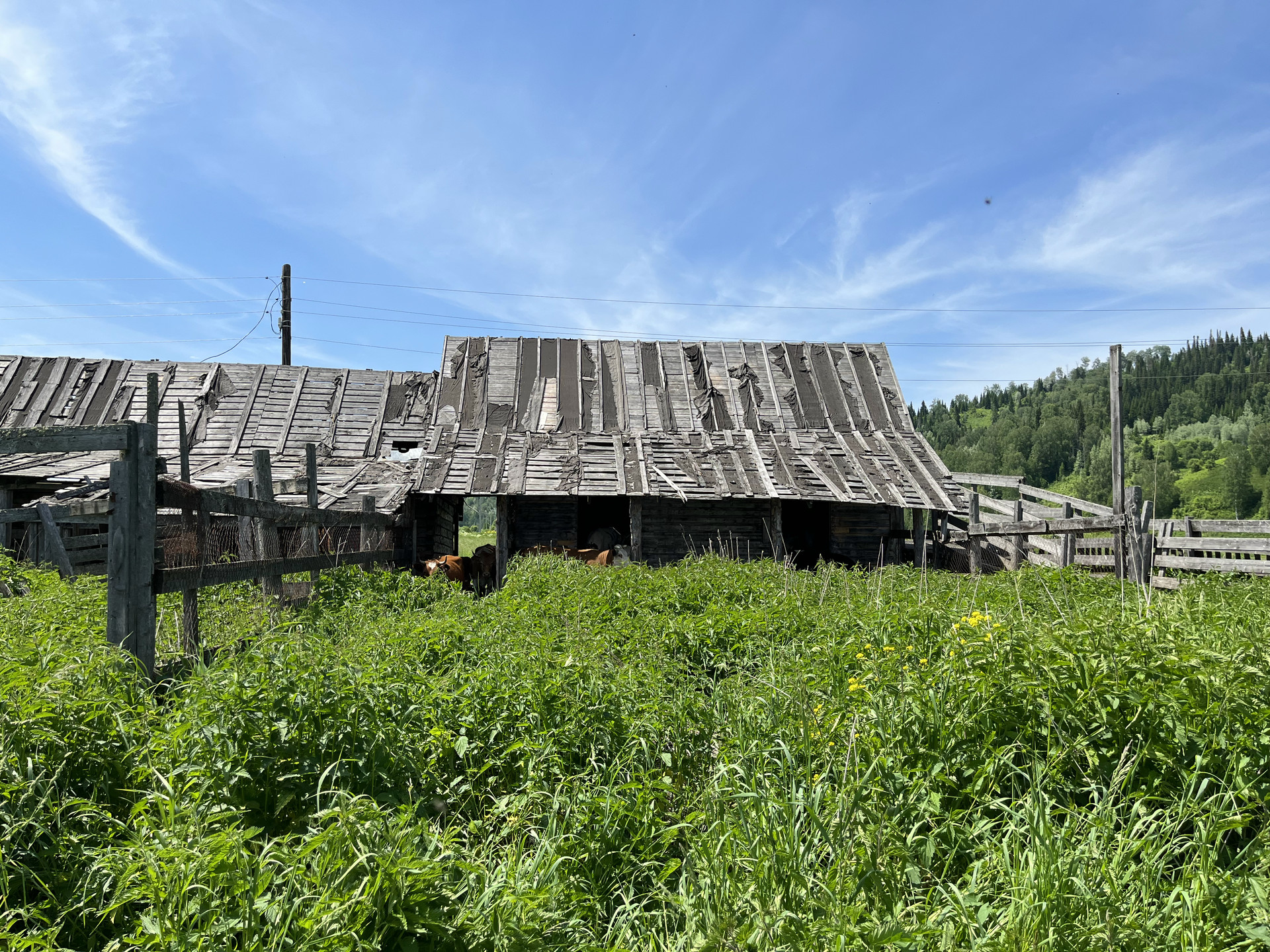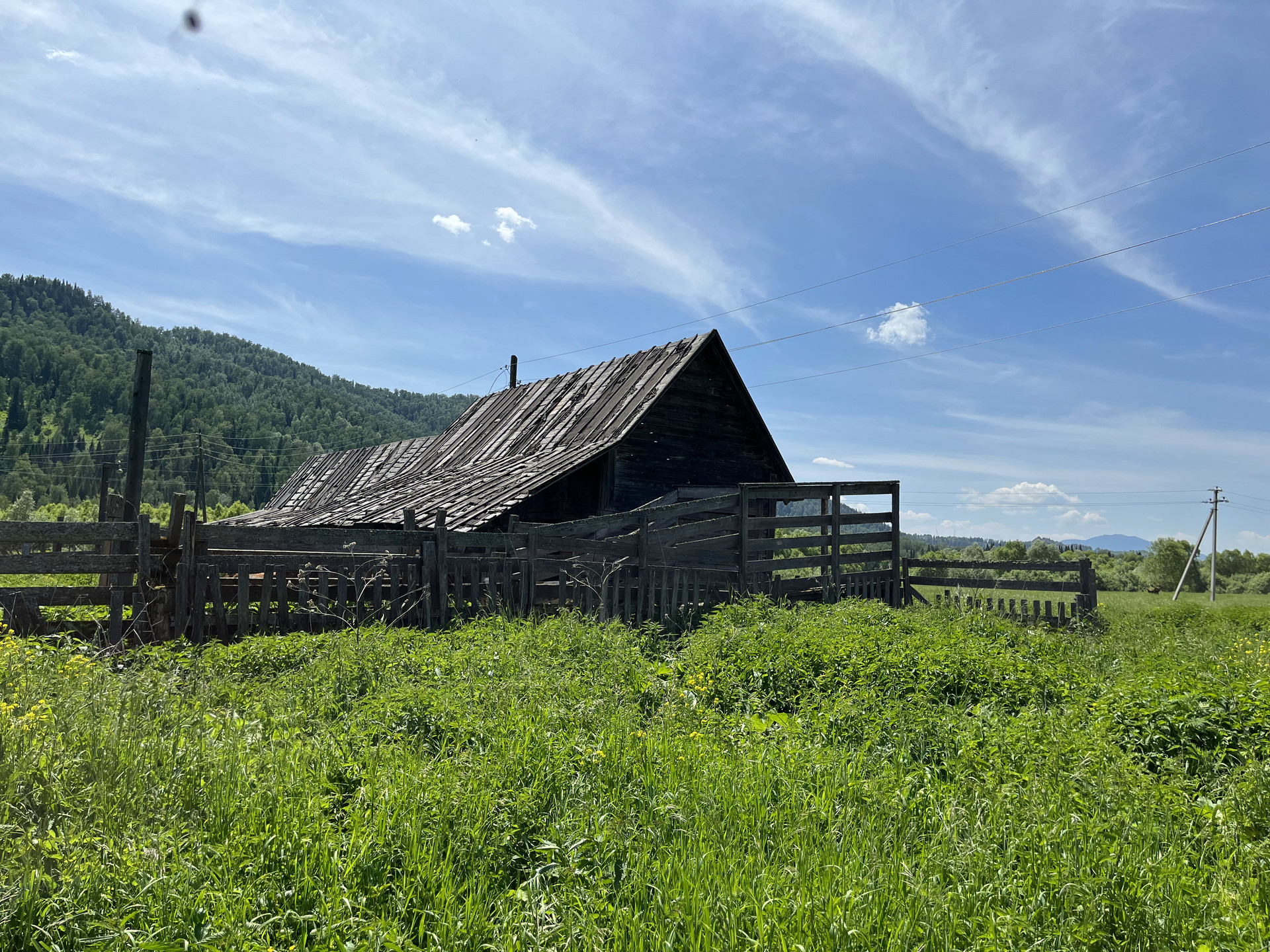 Продается дом (хозяйственный двор, для содержания скотины с бытовкой, более 40 квадратных метров помещений) на участке 25 соток в тихой живописной деревне в Горном Алтае, на дороге к Телецкому озеру.