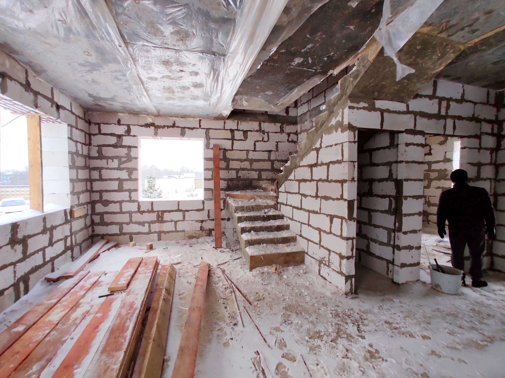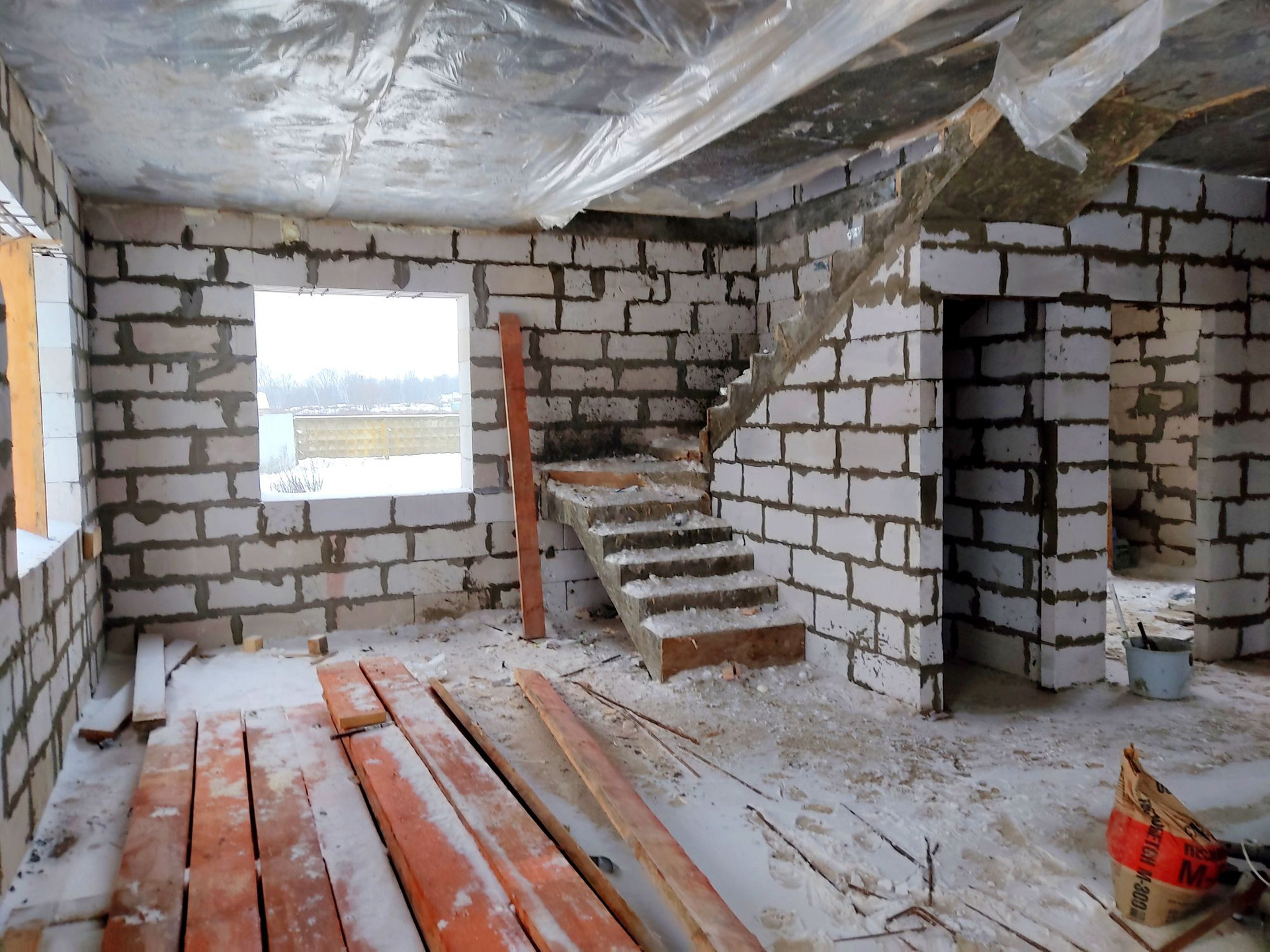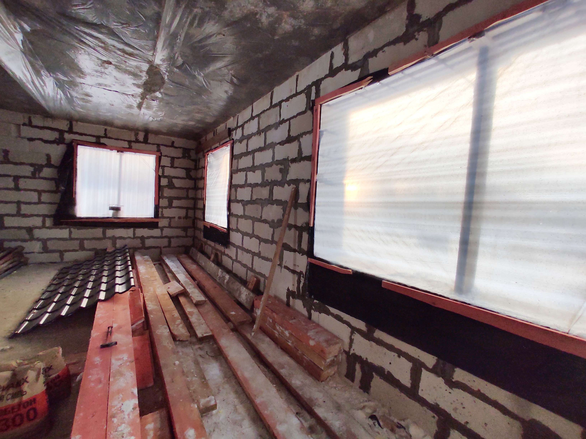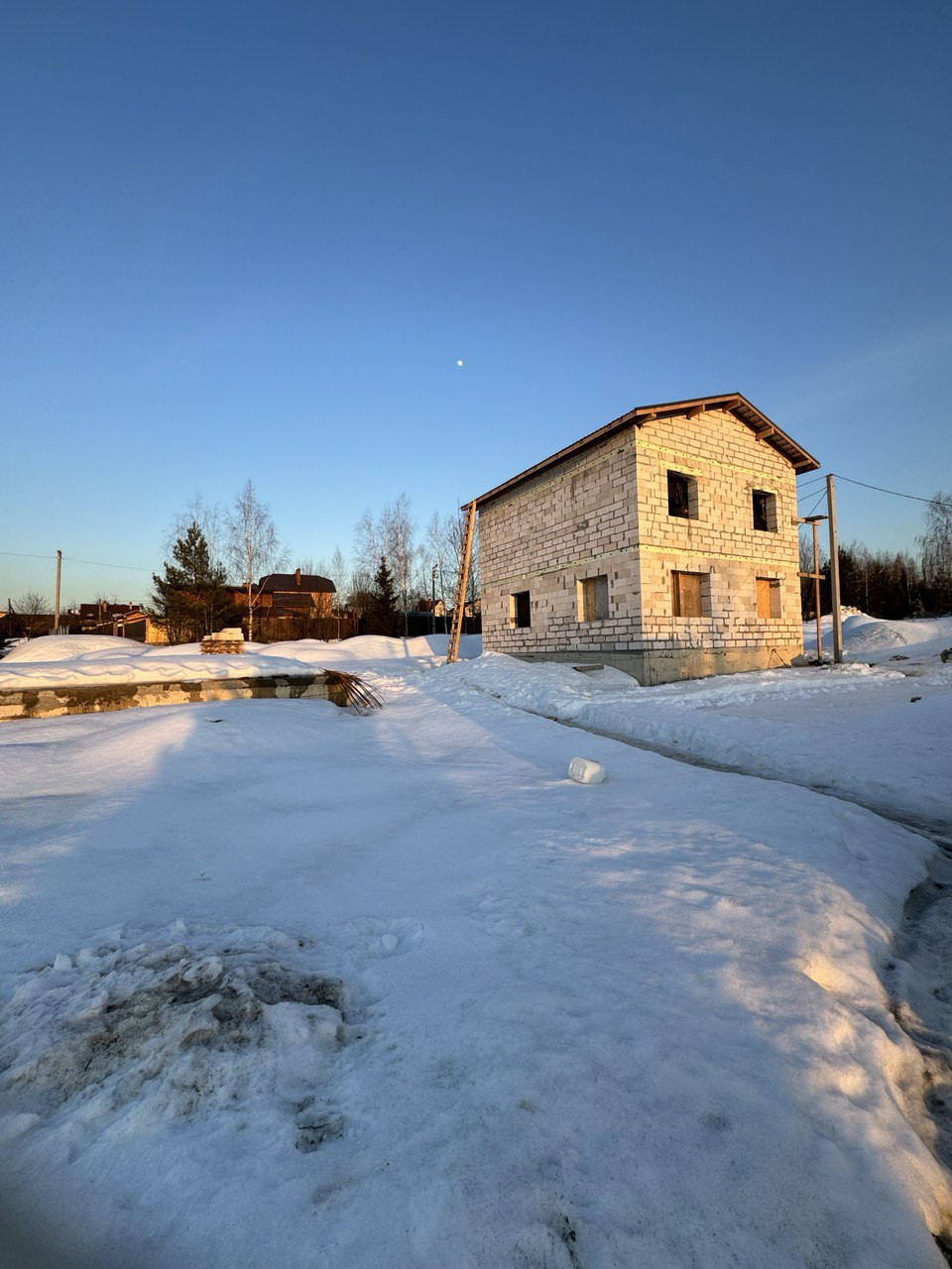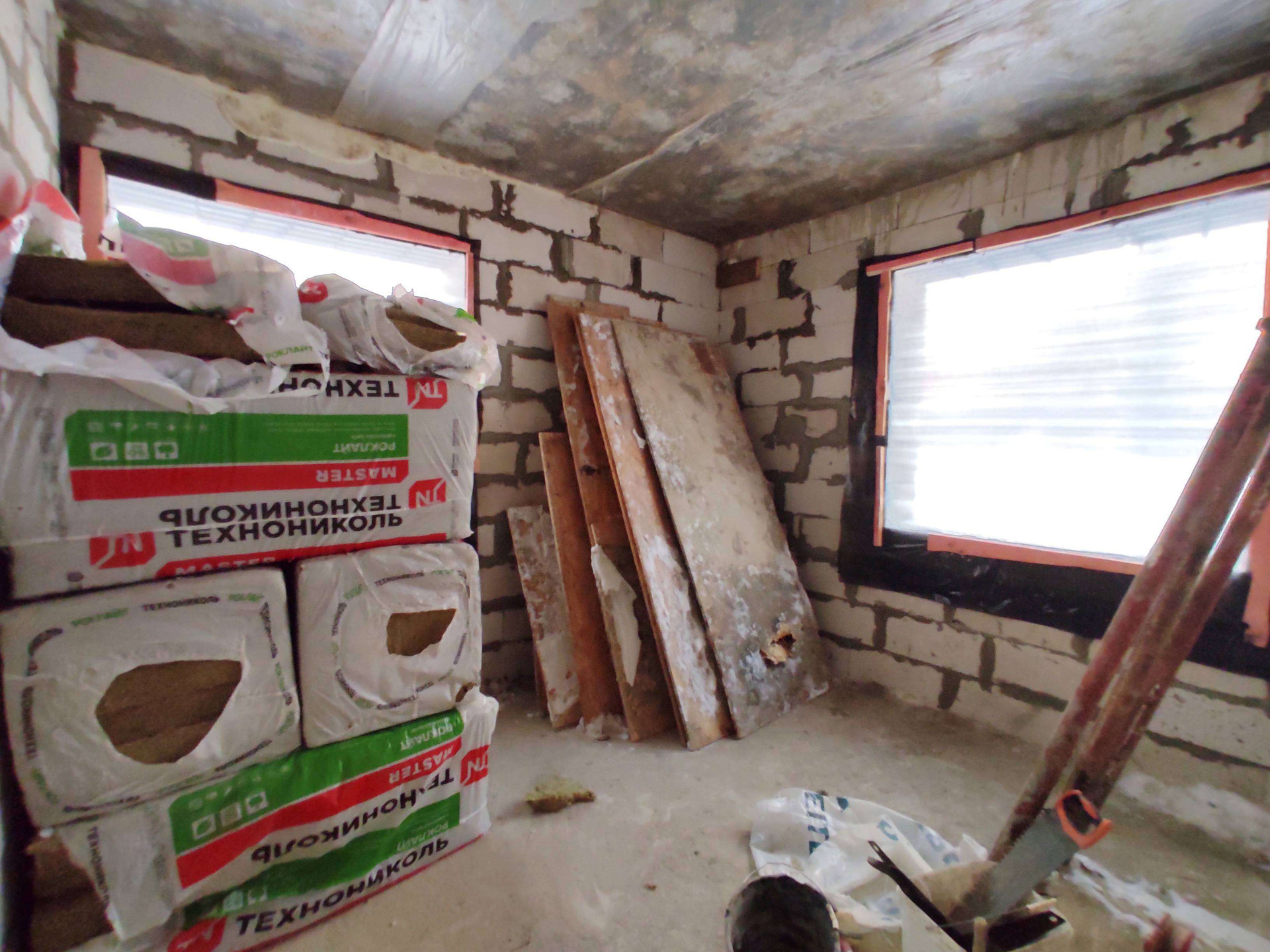 Дом из газоблока 400мм. Окна профиль 70 мм. ( будут в первых числах апреля, цвет: темный шоколад). Фундамент: Лента + плита. Ж/Б перекрытия. Крыша с чердаком. Утепление крыши 200 мм. Полноценный 2-ой этаж с высотой потолков 3 м.