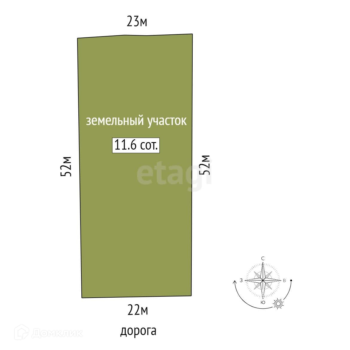 Площадь участка 11.6 сот.