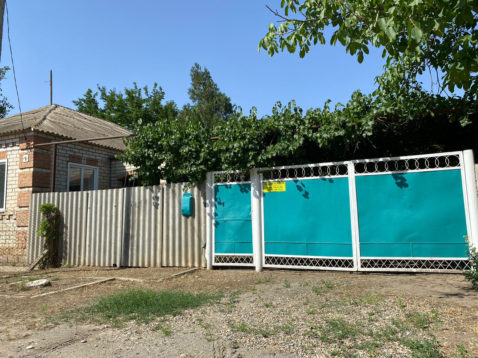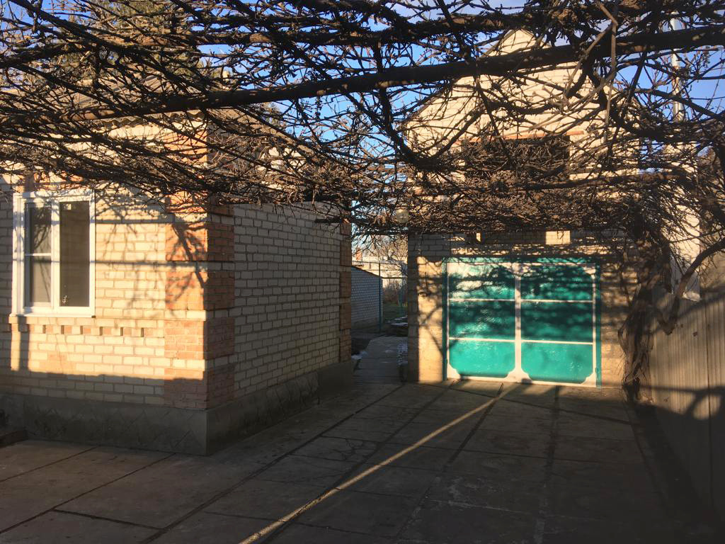 Двор просторный забетонирован, у дома по беседке плетется виноград, который спасать вас будет от летней жары.
