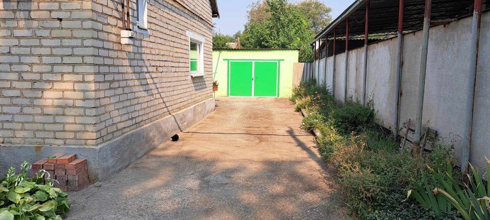 Двор уютный, имеется место для беседки, качели. Во дворе имеется полисадник с цветами, розами, виноградник. Множество фруктовых плодоносящих деревьев: сливы, яблони, груши, вишня. Также кустарники малины, смородины, жимолость. Огород.