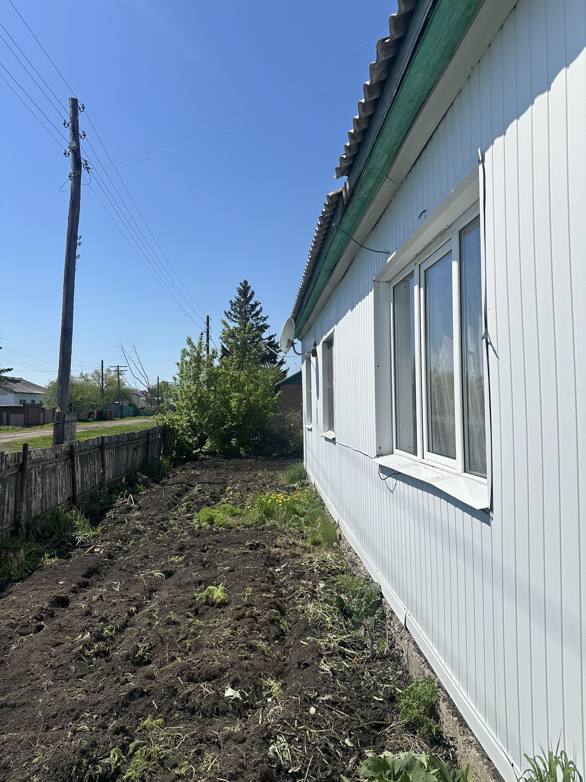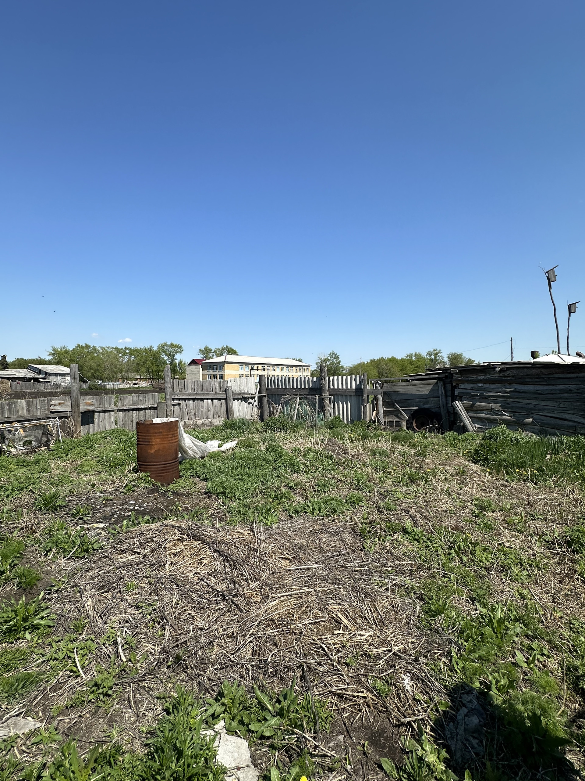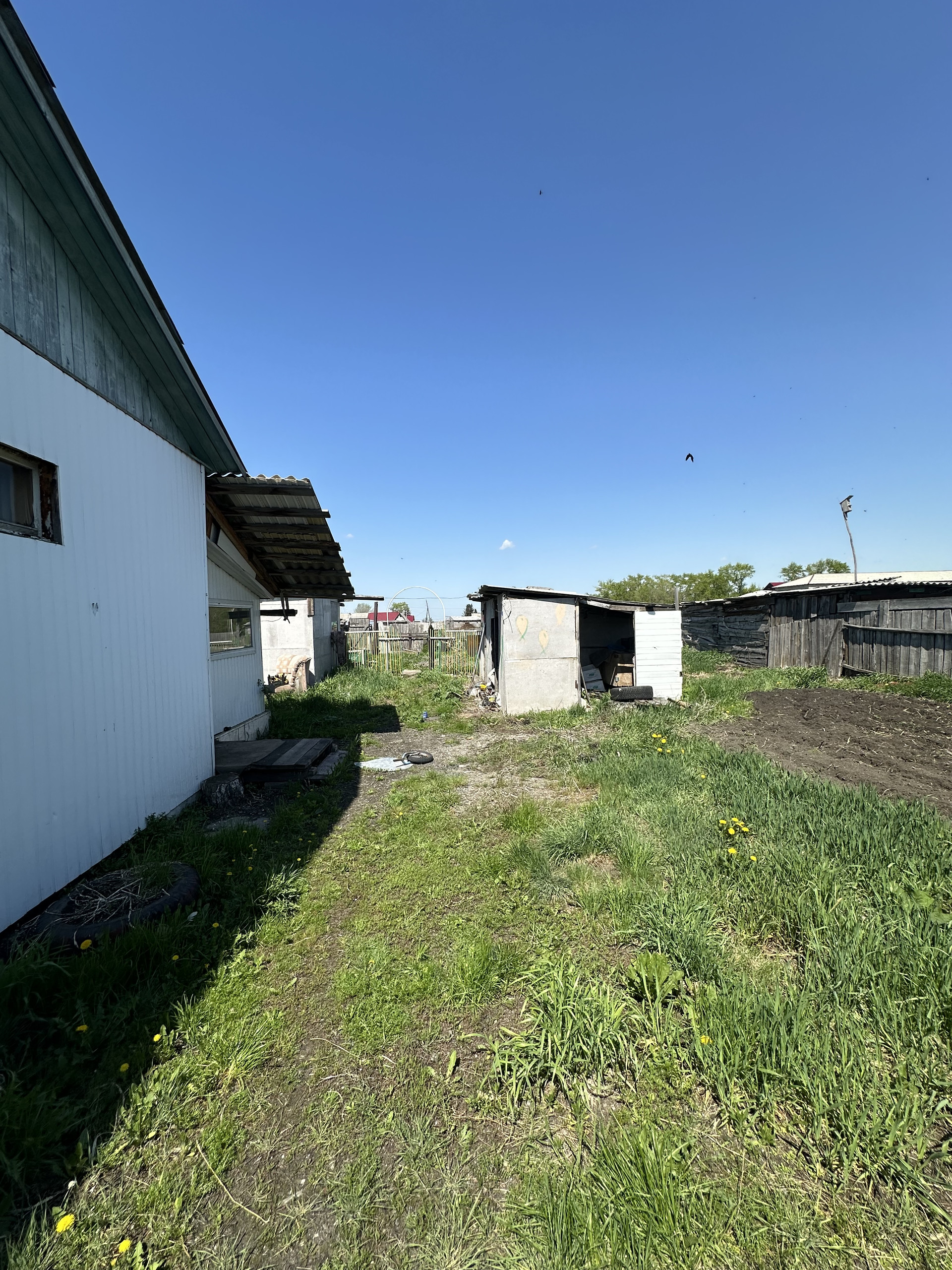 Земельный участок 18 соток в собственности, проведено межевание. На участке есть хоз/постройки для животноводства и инвентаря, гараж, баня (состояние удовлетворительное), огород для посадок (яблони, черешня, красная черемуха) и поле под картошку. Соседи очень хорошие.