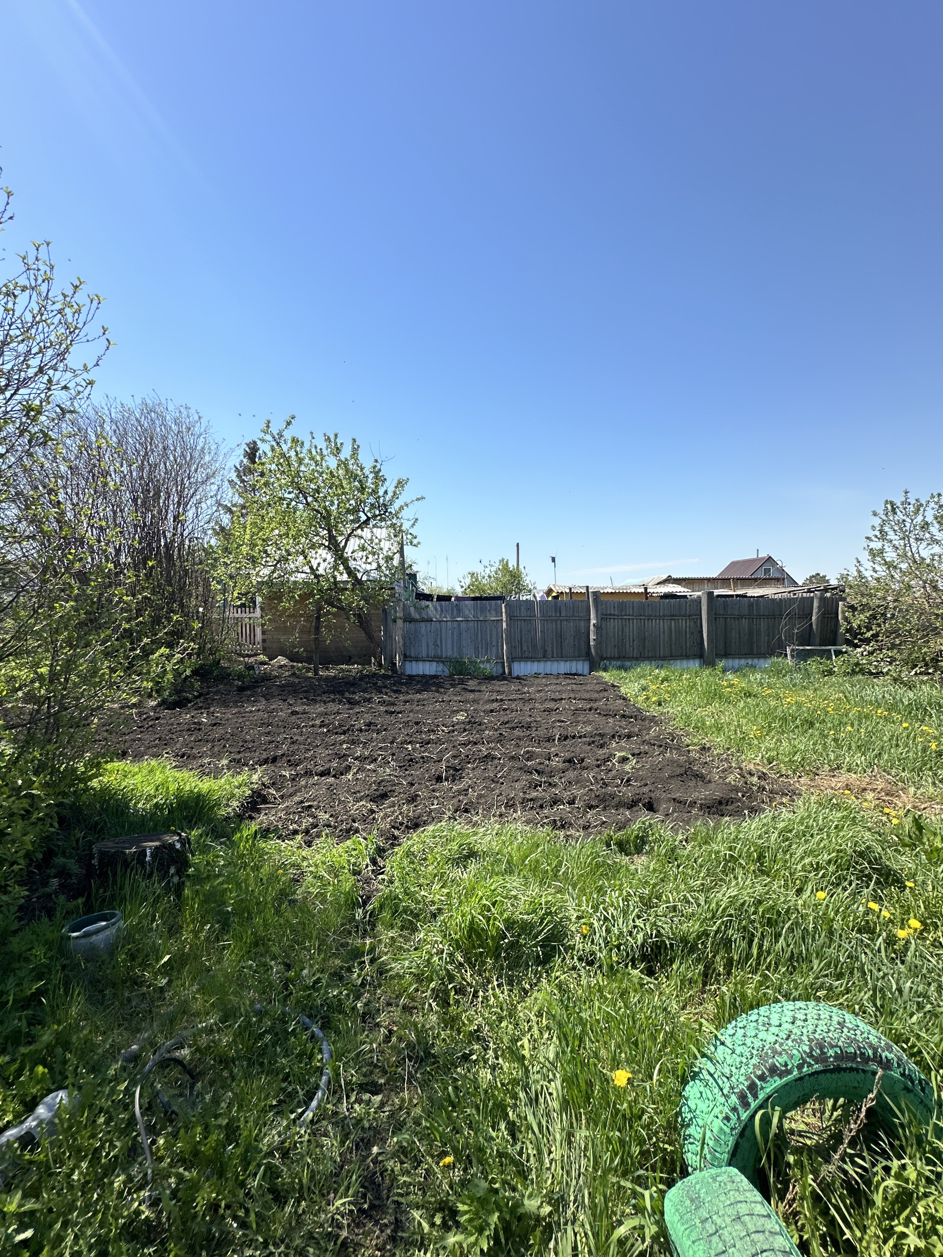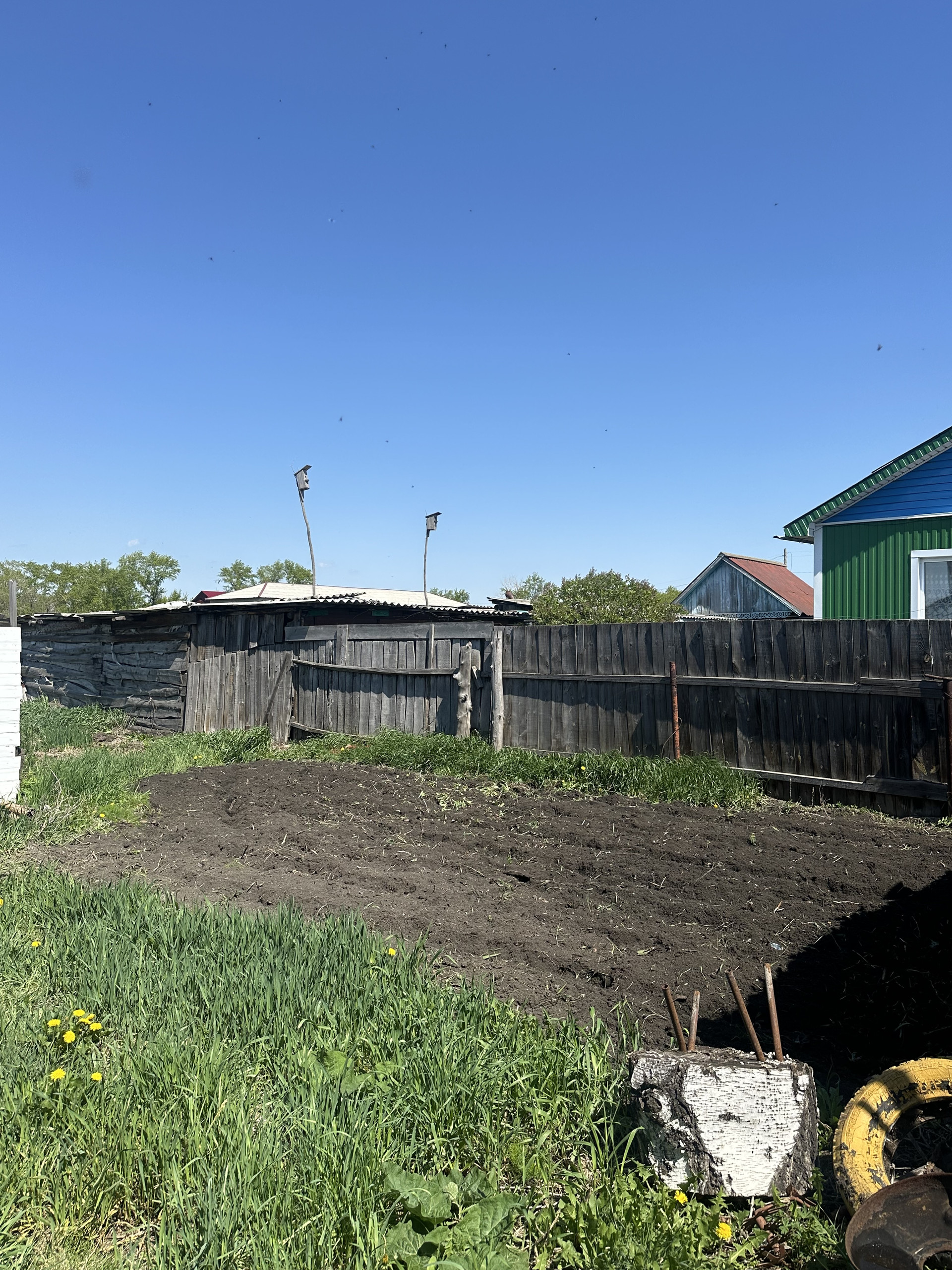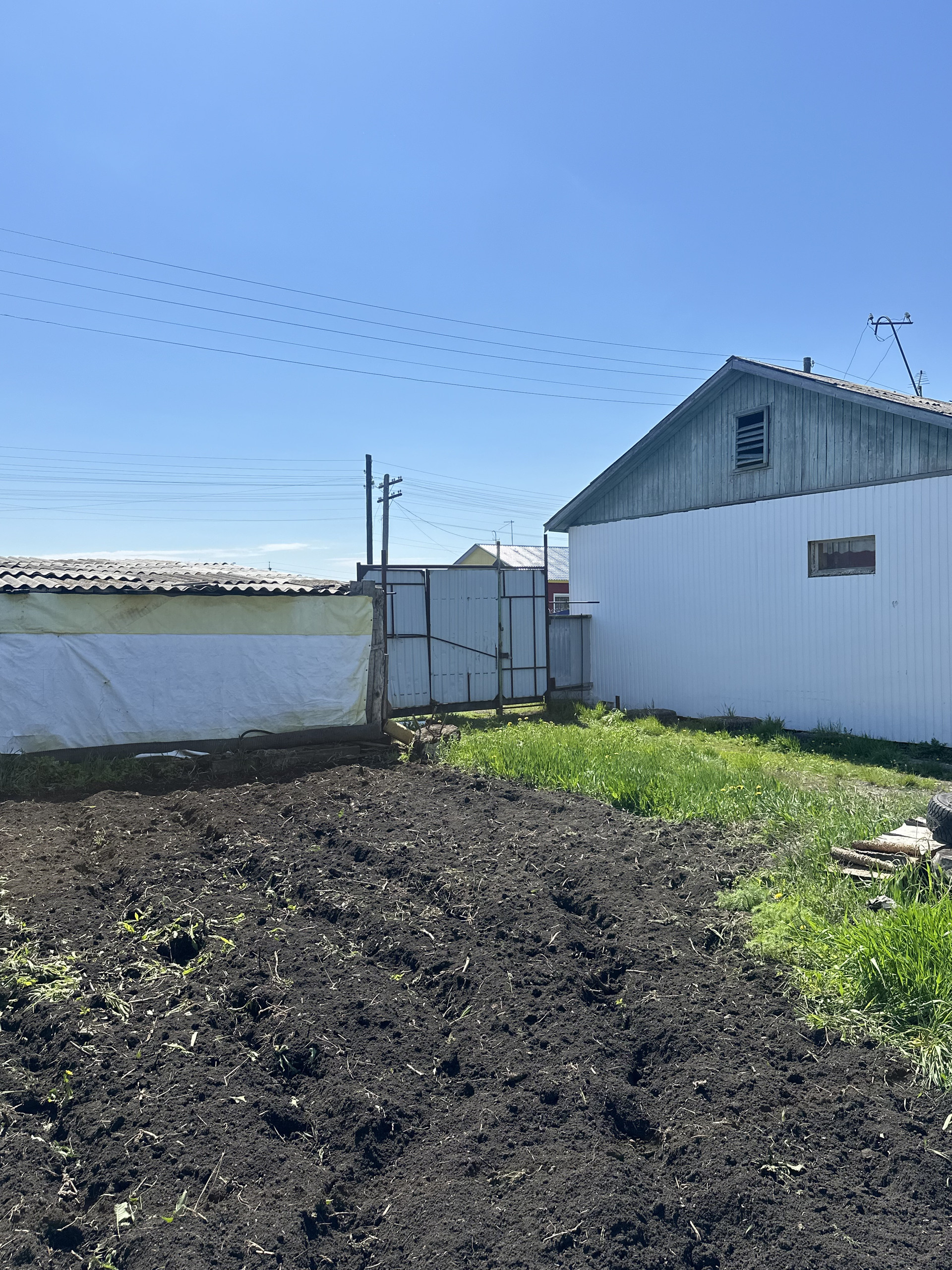 Земельный участок 18 соток в собственности, проведено межевание. На участке есть хоз/постройки для животноводства и инвентаря, гараж, баня (состояние удовлетворительное), огород для посадок (яблони, черешня, красная черемуха) и поле под картошку. Соседи очень хорошие.