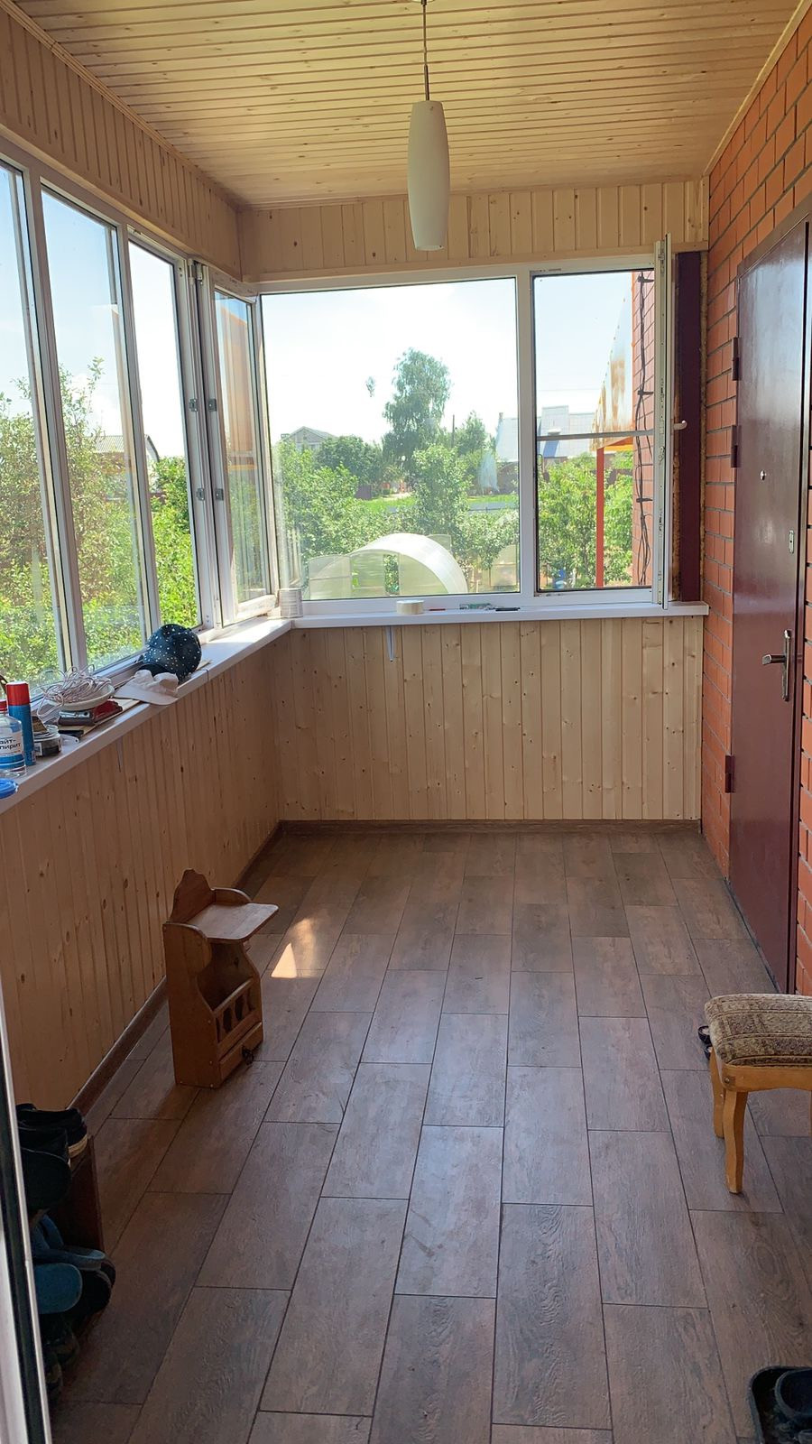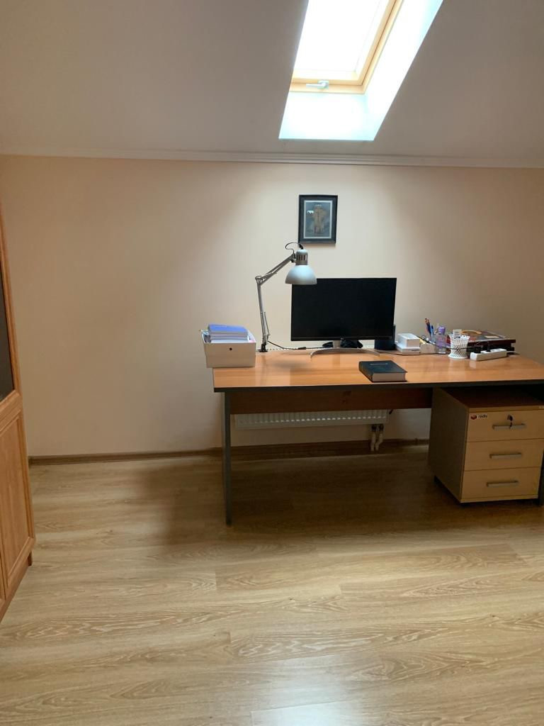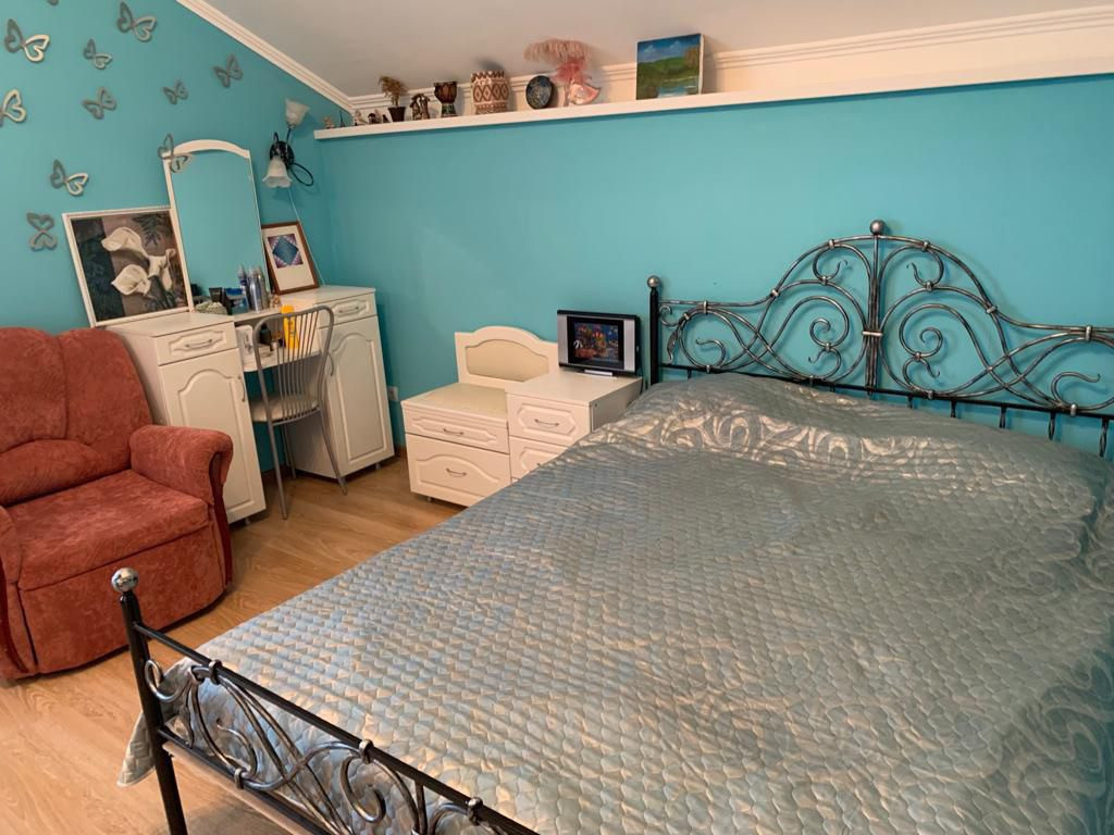 Цокольный этаж. Первый этаж: Душевая, туалет, хол-кухня, спальня, коридор, лестница на 2 этаж. Второй этаж: коридор, 3 комнаты, совмещенный туалет с ванной, в одной комнате гардеробная. Отделка: Лестница дуб, паркет на 1 этаже дуб и красное дерево, керамгранит, ламинат на 2 этаже и покраска стен.