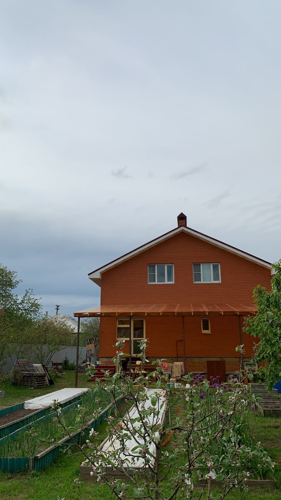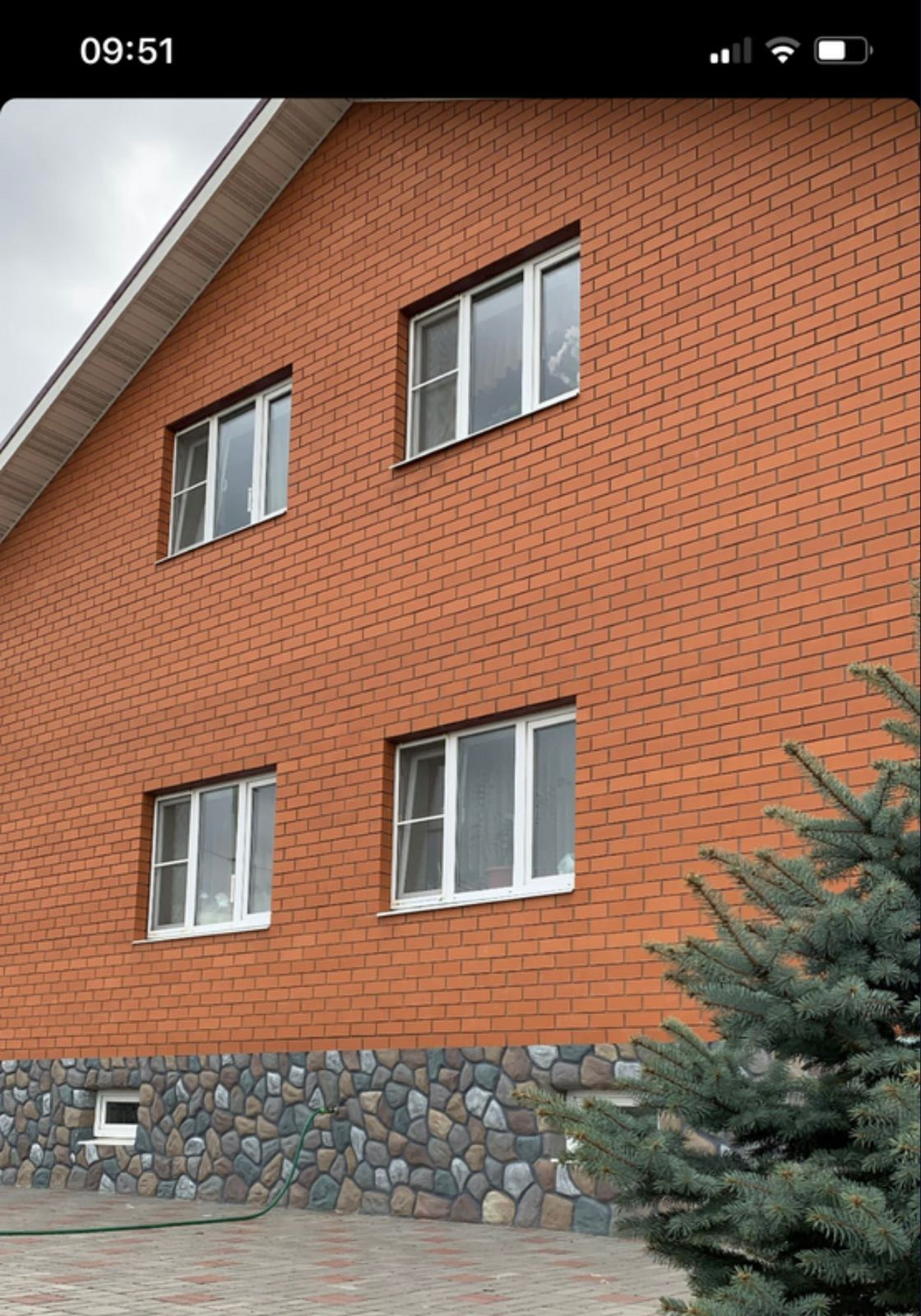 На участке есть старые хозяйственные постройки с газом, электричеством , водоснабжением. Дом построен 11 лет назад из высококачественных материалов. Монолитный ленточный фундамент 1000х400 мм, с арматурой 16 мм, выложен на песчаной подушке. На фундаменте 3 ряда ФБС5 блоков. Стеновой комплект -500 мм: блок газосиликатный -400 мм, 30 мм воздушная шахта, облицованный красным керамическим кирпичом. Вентилируемая стропильная система из качественного леса, с последующей обработкой огнебиозащитным составом, полный пакет гидропароизоляции, утепление кровли 200 мм. Покрытие кровли металлочерепица вишневого цвета. Перекрытия цокольного и первого этажа железобетонной плита на уровне 3 м. Инженерные коммуникации в доме: газ, электричество, центральное водоснабжение и водоснабжение из собственной скважины, канализация 2 септика по 4 кольца + крышки с люками. Дорога от дома до города асфальт, 10 км. Внешний периметр стен 10х11 м.