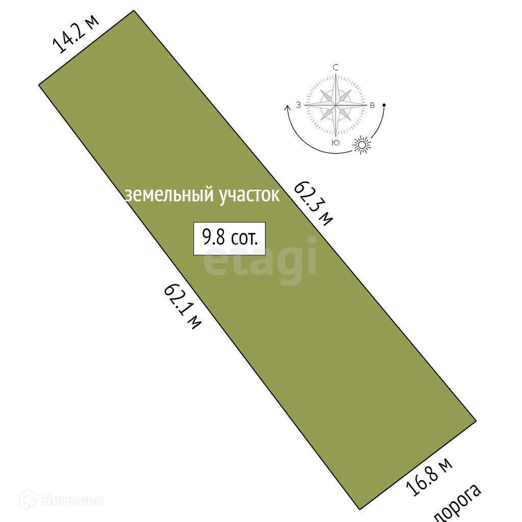 Площадь участка 9.8 сот.