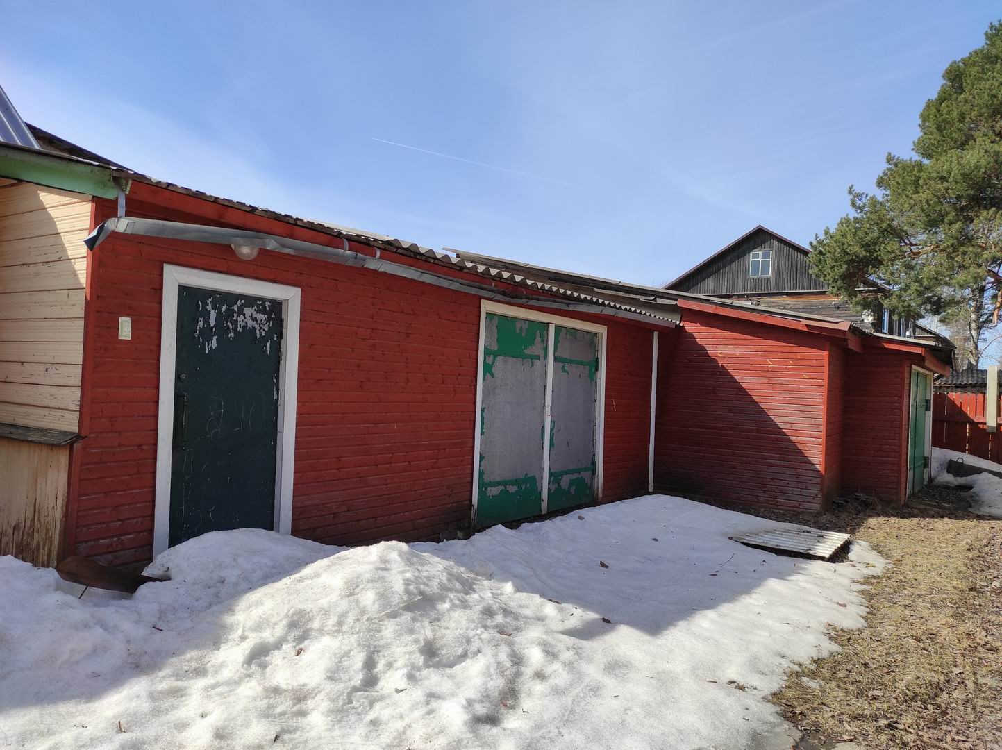 На участке есть все, что нужно для хозяйственной жизни. Здесь вы найдете гараж, дровеник, вальер для своей любимой собаки и даже две теплицы для выращивания свежих овощей и фруктов. А яблони на участке подарят вам вкуснейшие фрукты.