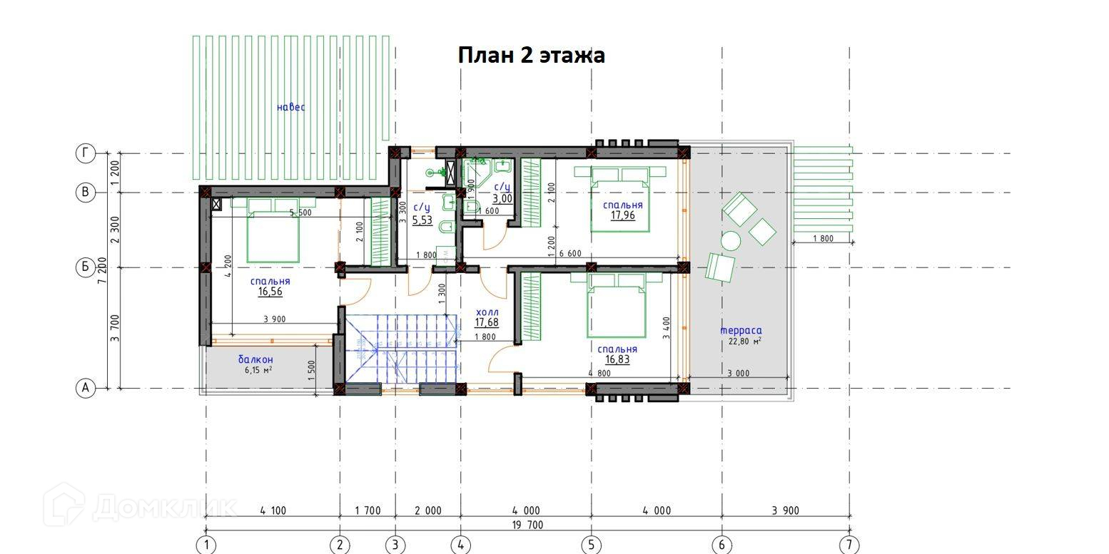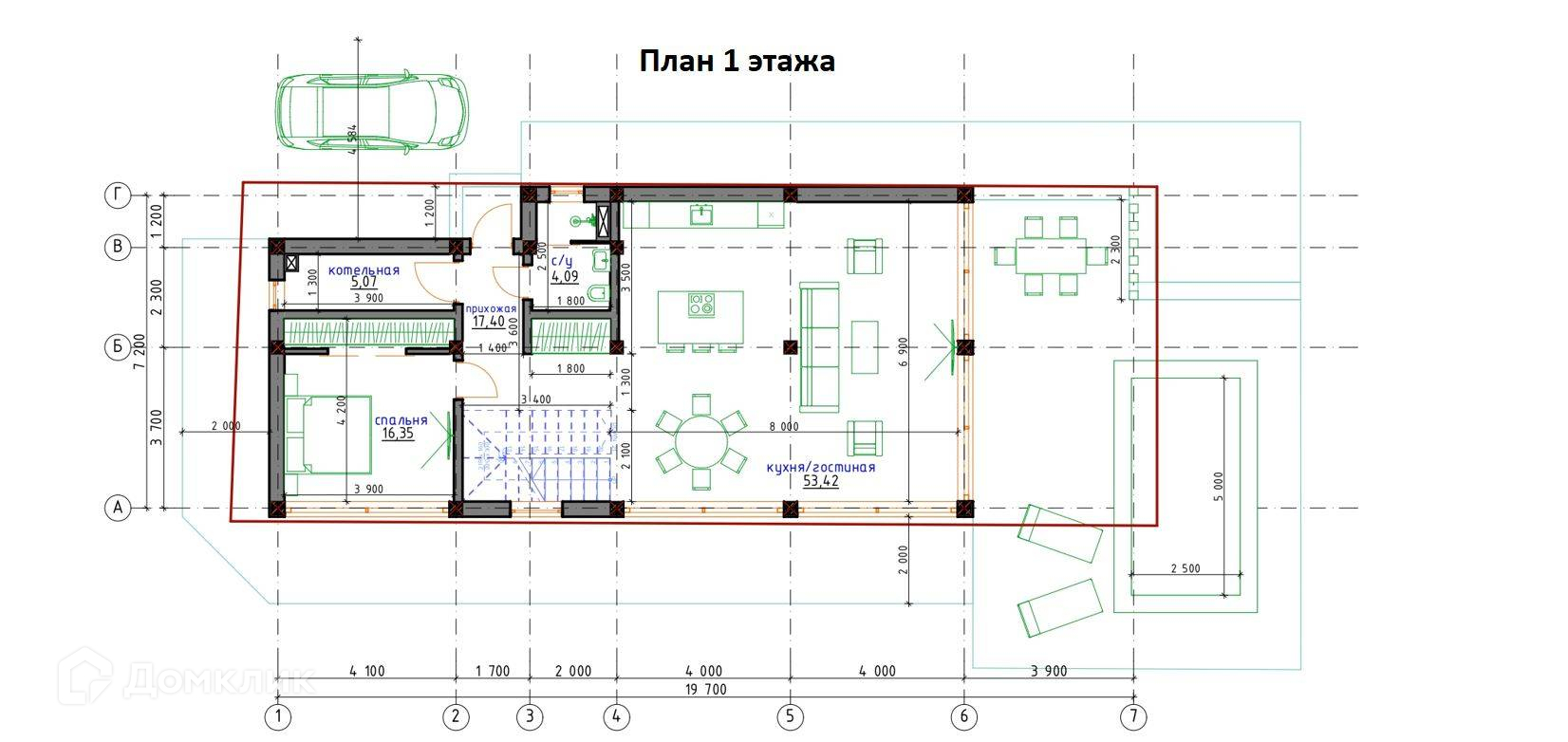 - Общая площадь всех этажей по внутренней поверхности внешних стен 196,47 м2- 49%.
