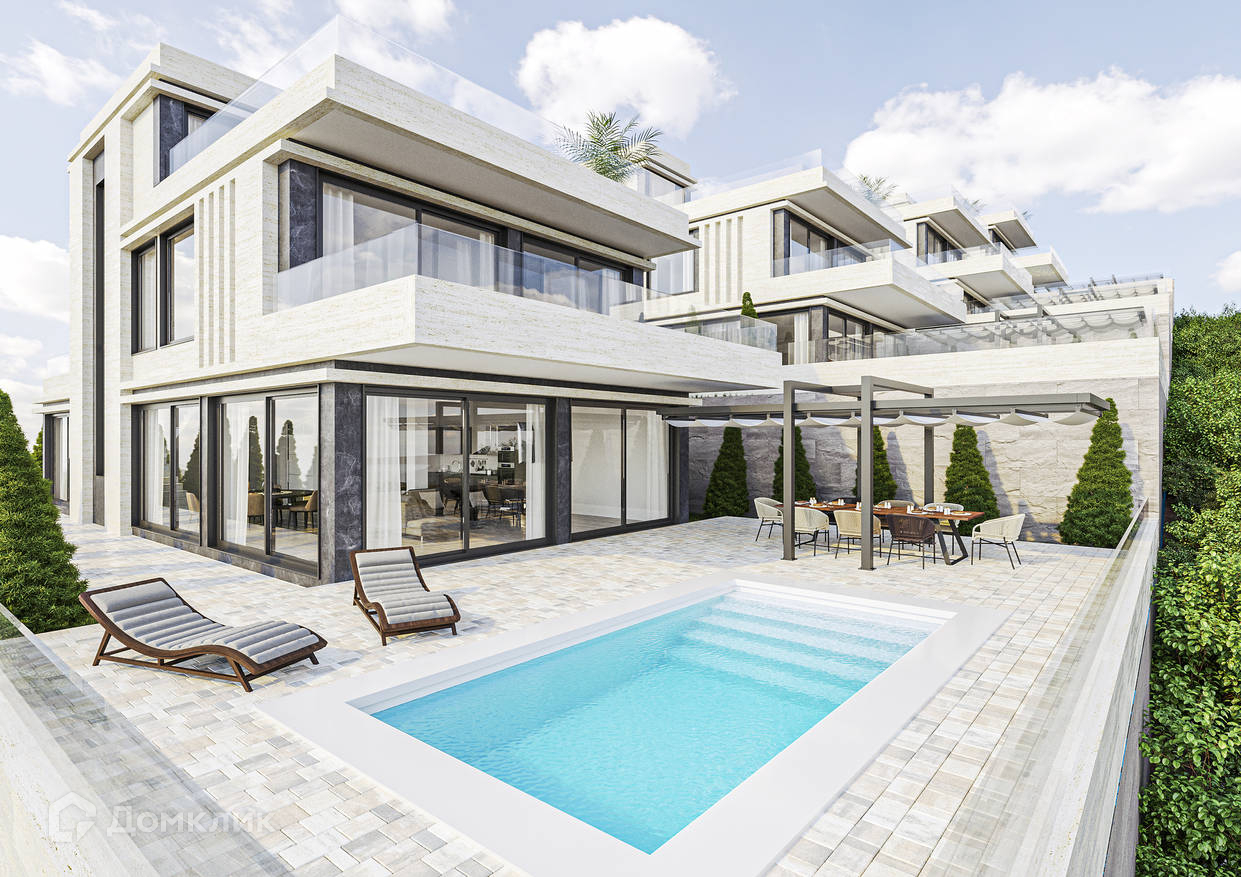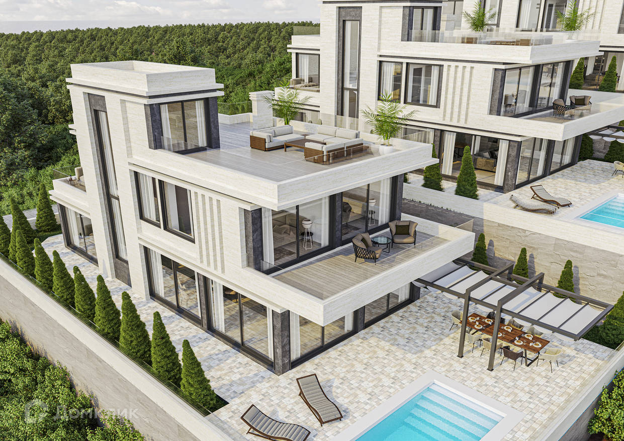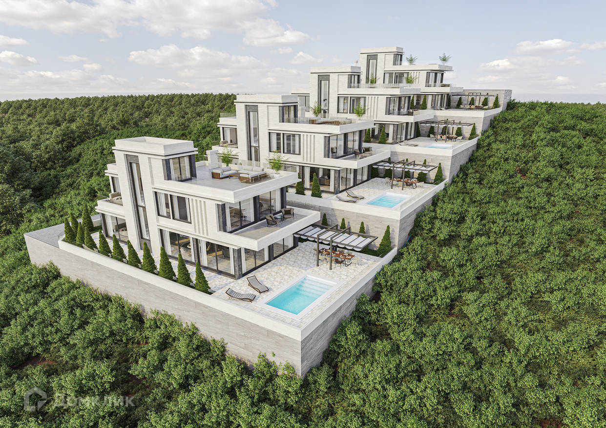 Каждый проект коттеджа включает в себя дом площадью 324 м2 (включая 3 этаж эксплуатируемую крышу), бассейн, мангал-зону, ланч-зону, зону отдыха, крытый паркинг на 2 машиноместа, дизайн ландшафта, систему видеонаблюдения, закрытая территория, автоматические ворота. Площадь земельных участков от 4 соток. С каждого коттеджа открывается прямой вид на море, и открытый круговой вид Кавказских гор. Коттеджи строятся по авторскому проекту известного архитектурного бюро в г. Сочи, строительство ведется в полном соответствии с проектно-разрешительной документацией.