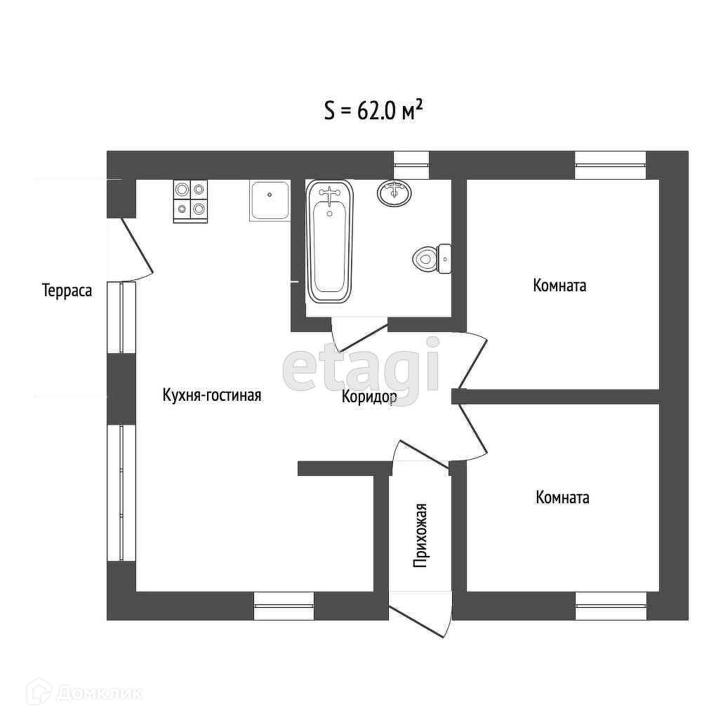 Общая площадь 62 м2